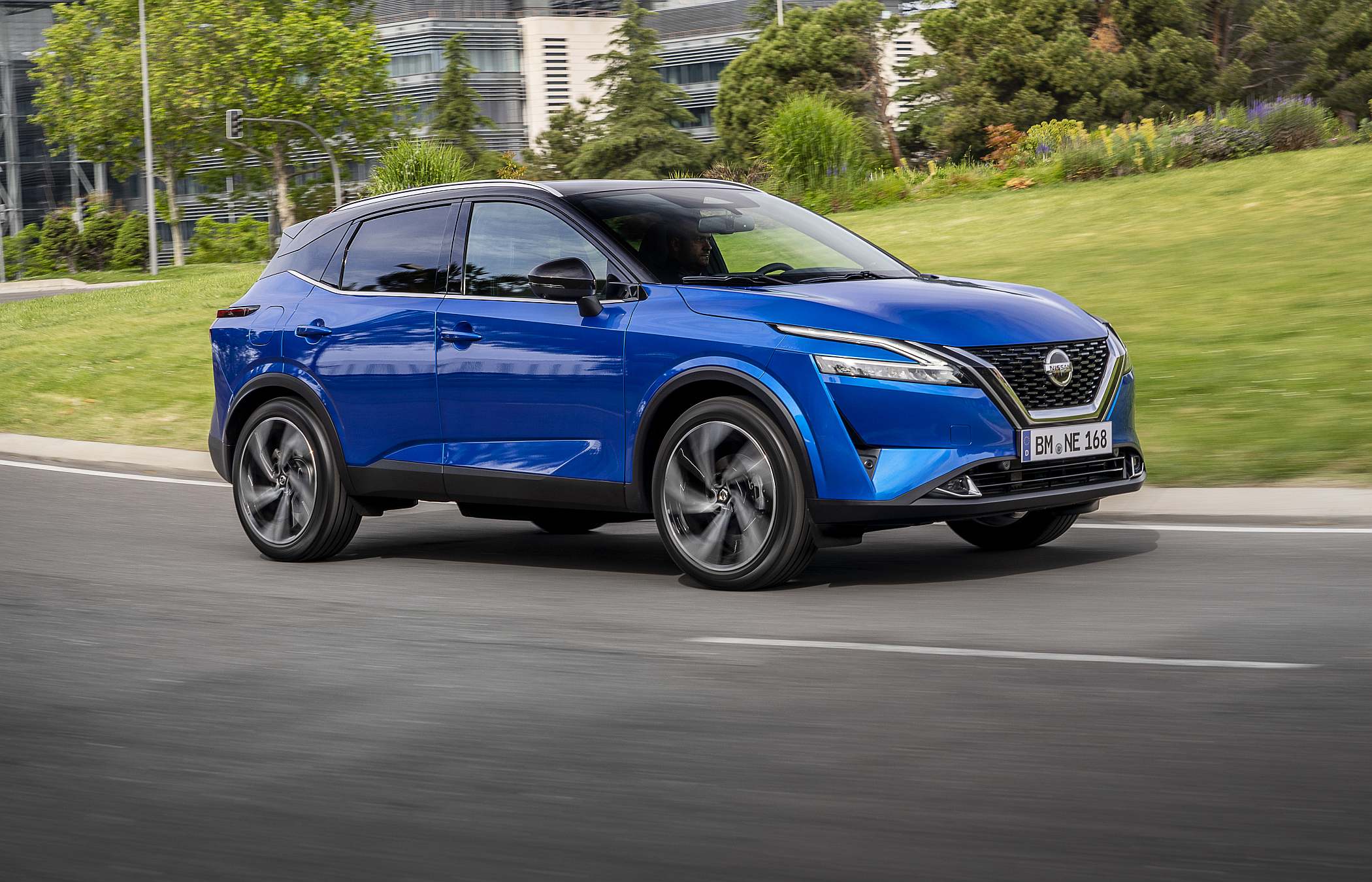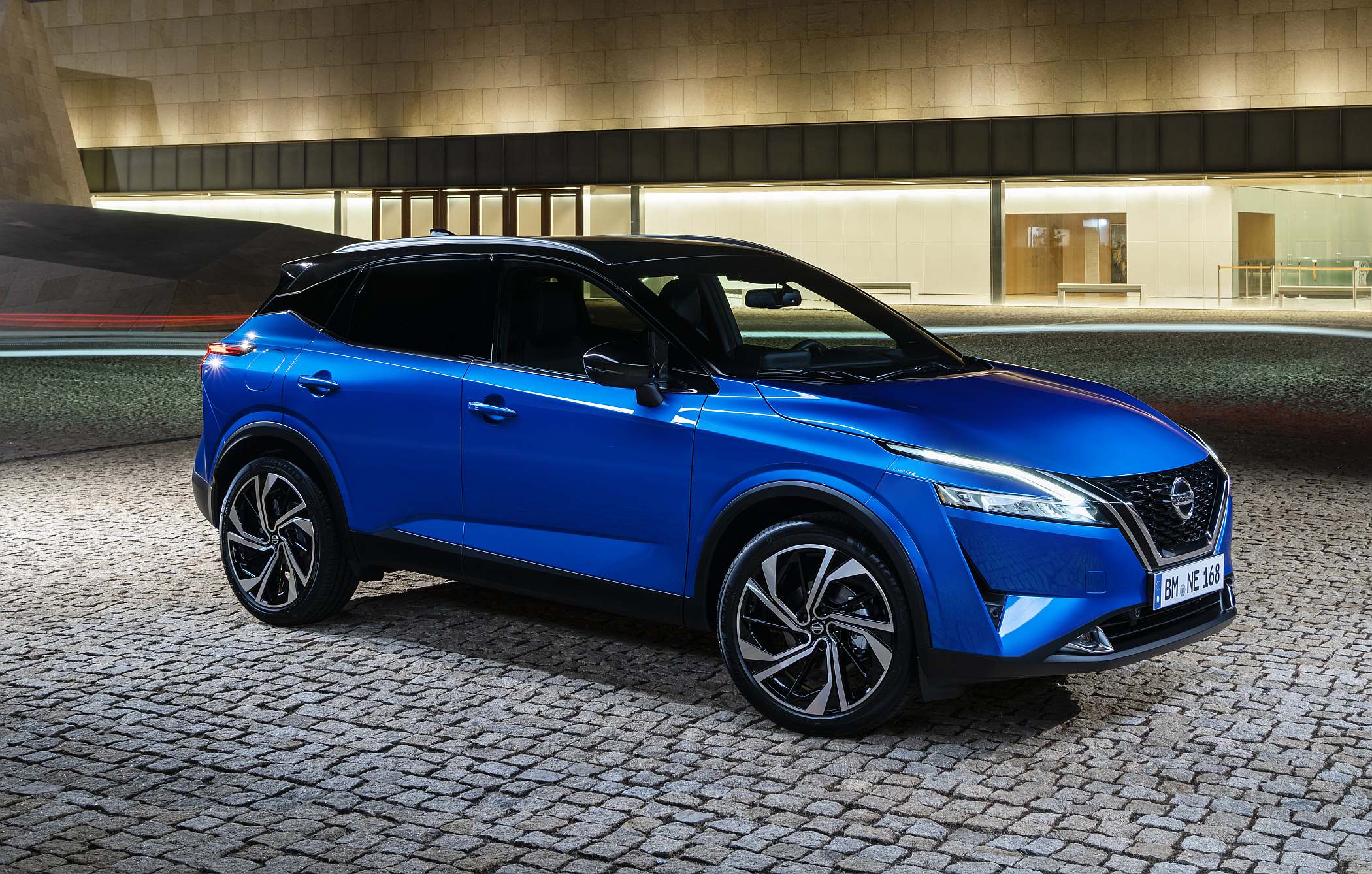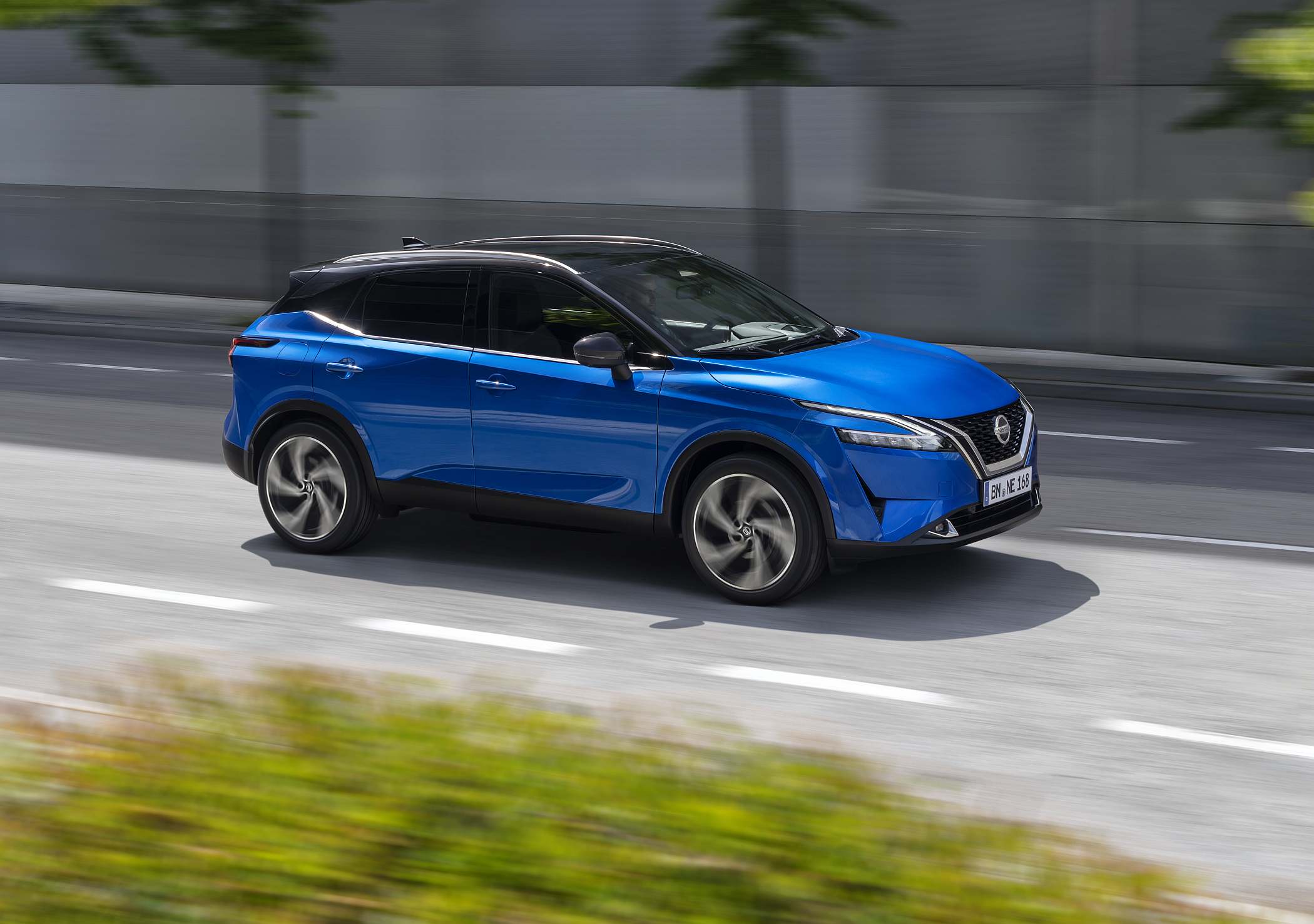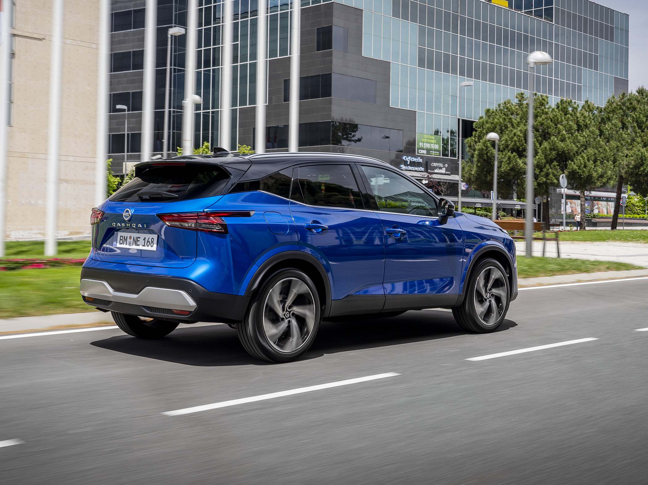 Jantes de… 20″, um recorde!De perfil, destacam-se as jantes de 20″ montadas pela primeira vez num Qashqai, de série no nível de equipamento Tekna+, e uma linha de cintura ascendente que contrasta com o tejadilho descendente que culmina numa secção traseira muito angulosa. O efeito parece ter sido conseguido até porque a carroçaria proporciona uma visão muito atlética e dinâmica, sem chegar ao extremo de um SUV Coupé.