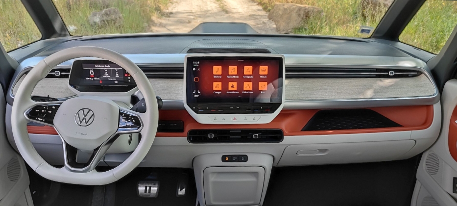 Ao nível tecnológico, o ID. Buzz revela similitudes com modelos como o ID.4 ou o ID.5, nomeadamente em termos de comandos, destacando-se a elevada vertente de digitalização (o que sem sempre é brilhante, como já sucede nos modelos supracitados). A posição de condução elevada, como num SUV, revela uma excelente visibilidade geral, beneficiando ainda de um painel de instrumentos digital de 5.3″ minimalista que informa o condutor do essencial, incluindo os consumos.