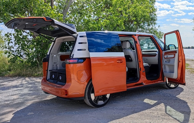 Com 4712 mm de comprimento e 2989 mm de distância entre eixos, o ID. Buzz assume um formato compacto e retangular por fora, mas predomina a habitabilidade, com capacidade para cinco passageiros com folga, mas com a promessa de uma versão de distância entre eixos mais longa já no horizonte, com cinco, seis ou sete lugares disponíveis. Dependendo da especificação, o ID. Buzz tem uma altura entre 1927 mm e 1951 mm. Sem contar com os espelhos, mede 1985 mm de largura.