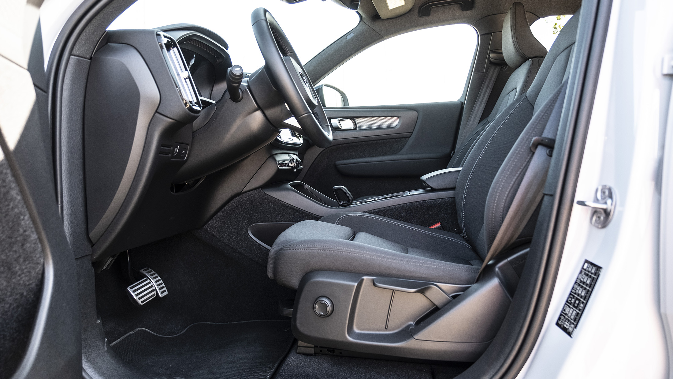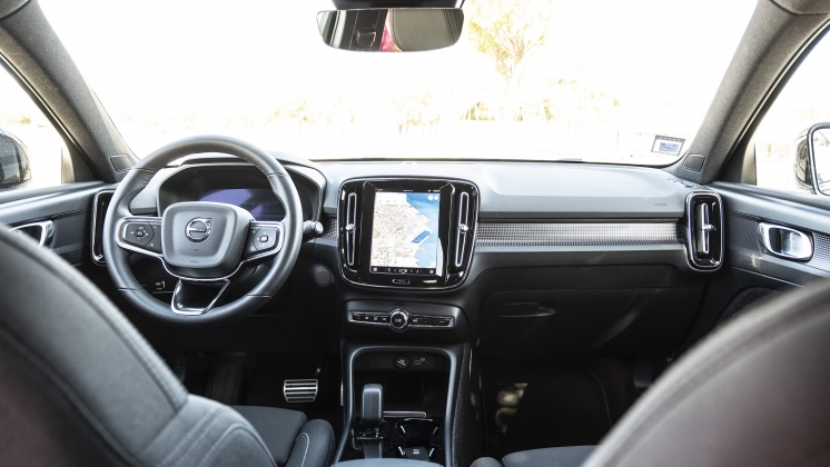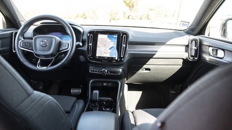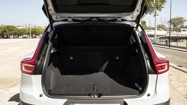 No interior do XC40 Recharge Plus, a versão testada, não há vestígios de pele de origem animal. Os materiais utilizados são maioritariamente de origem reciclada, sem por isso perderem um feeling premium, tanto ao olhar, como ao toque. O espaço a bordo não é referencial no segmento, a causa é a utilização da plataforma CMA, que por uma questão de custos está pensada para receber também motores de combustão como é o caso do XC40.Ainda assim há espaço disponível para acolher quatro adultos muito confortavelmente, sendo o lugar do meio do banco de trás penalizado pela existência do túnel de transmissão reservado ao irmão XC40 que ainda monta um motor de combustão. A bagageira disponibiliza 419 litros e na frente ainda há um compartimento com mais 30 litros, onde se podem guardar os cabos de carregamento.