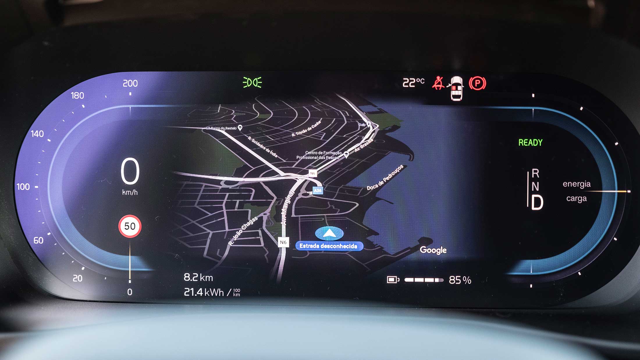 Os clientes de automóveis elétricos dão muita importância ao software, à interface e à integração com o seu smartphone. A Volvo percebeu isso e deu aos clientes algo que estão habituadas a utilizar no seu dia a dia: um ecrã que replica o formato ao alto dos smartphones com um sistema integrado de serviços Google específico para automóveis, onde até podemos instalar as aplicações que mais utilizamos. A integração com o smartphone é total e a experiência de utilização com o software de navegação Google Maps é das melhores do mercado.