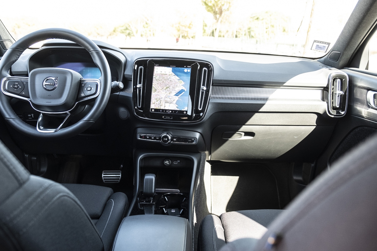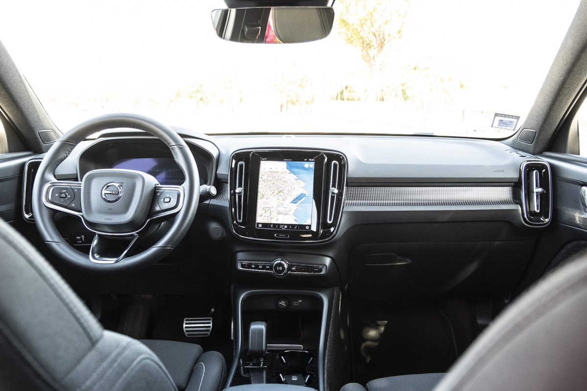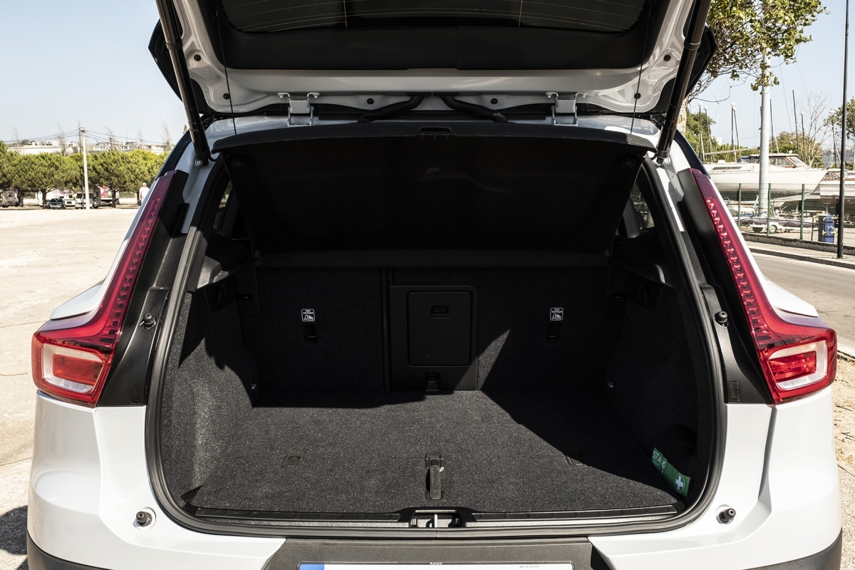 Ainda assim há espaço disponível para acolher quatro adultos muito confortavelmente, sendo o lugar do meio do banco de trás penalizado pela existência do túnel de transmissão reservado ao irmão XC40 que ainda monta um motor de combustão. A bagageira disponibiliza 419 litros e na frente ainda há um compartimento com mais 30 litros, onde se podem guardar os cabos de carregamento.