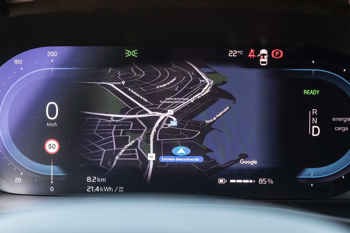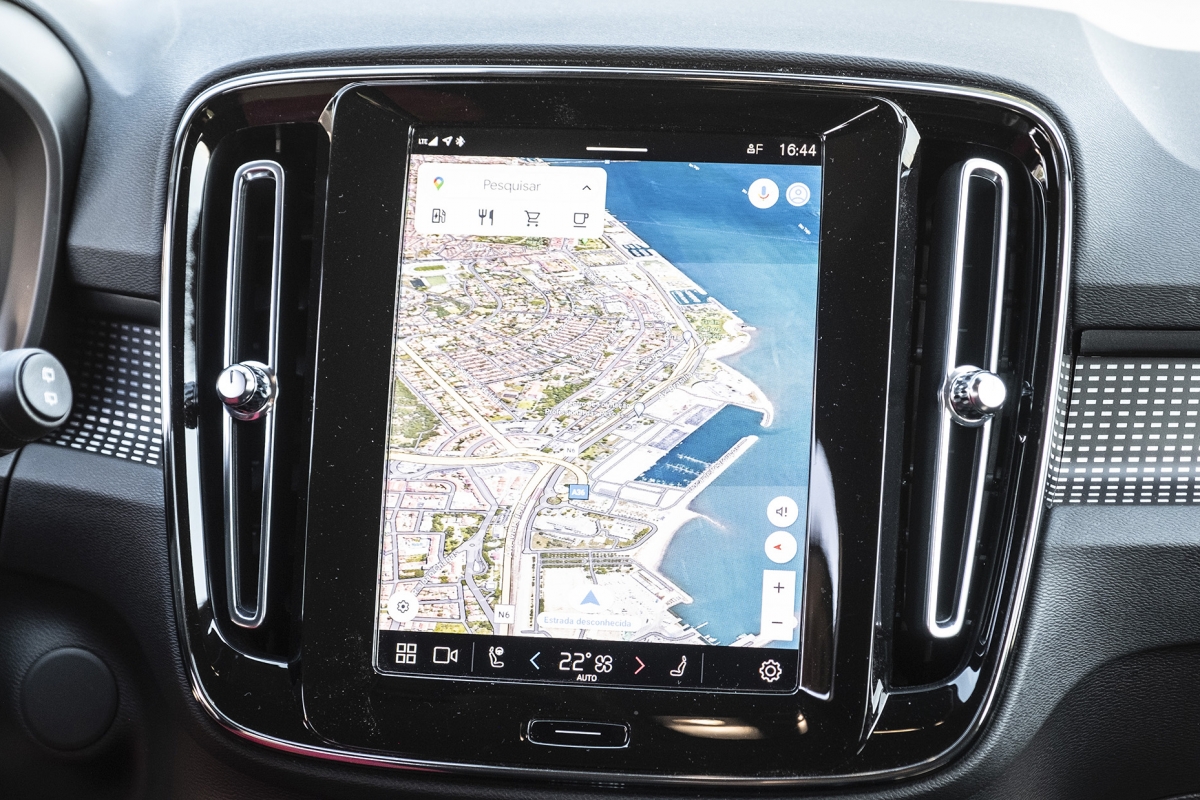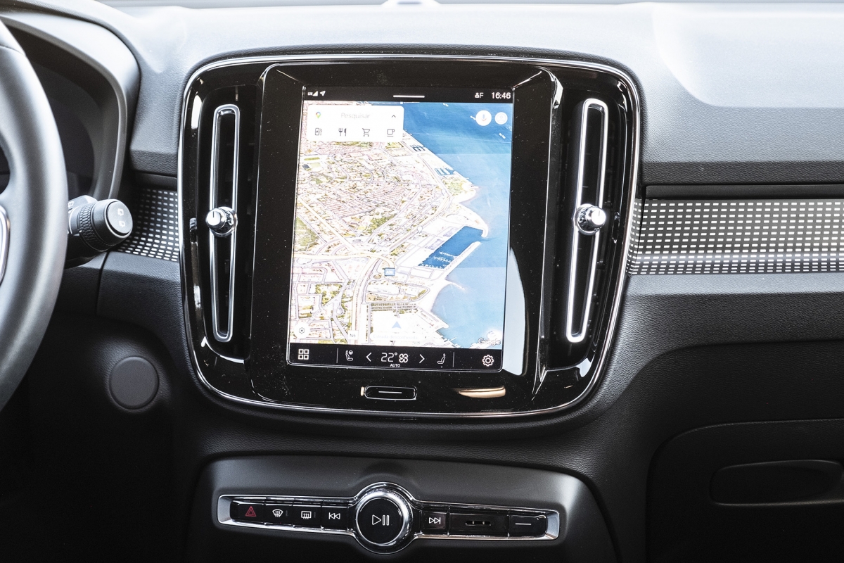 Os clientes de automóveis elétricos dão muita importância ao software, à interface e à integração com o seu smartphone. A Volvo percebeu isso e deu aos clientes algo que estão habituadas a utilizar no seu dia a dia: um ecrã que replica o formato ao alto dos smartphones com um sistema integrado de serviços Google específico para automóveis, onde até podemos instalar as aplicações que mais utilizamos. A integração com o smartphone é total e a experiência de utilização com o software de navegação Google Maps é das melhores do mercado.