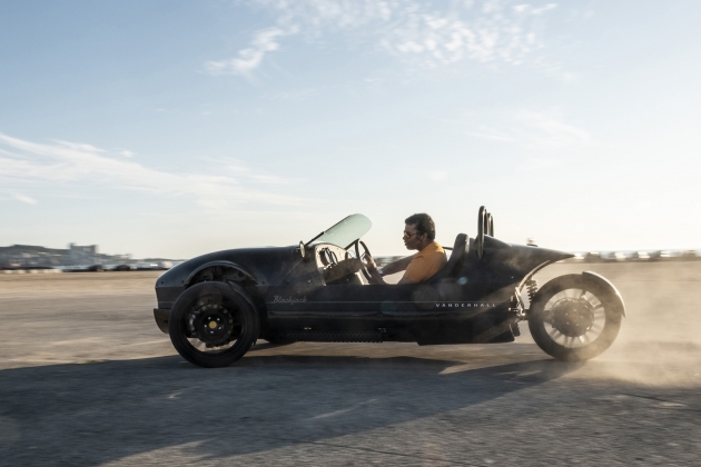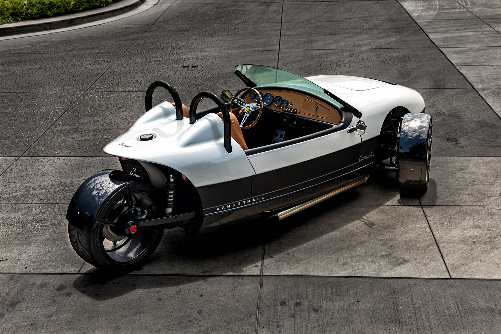 “É muito divertido de conduzir”, quem o diz é Jay Leno, o famoso apresentador de televisão que é também um reconhecido colecionador de automóveis durante o seu programa Jay Leno’s Garage. Steve Hall, o presidente da Vanderhall Motor Works é o homem a quem se deve a criação deste veículo inteiramente montado à mão em Utah, nos EUA que se conduz como um automóvel, mas que está homologado como um motociclo tanto no país de origem, como por cá.