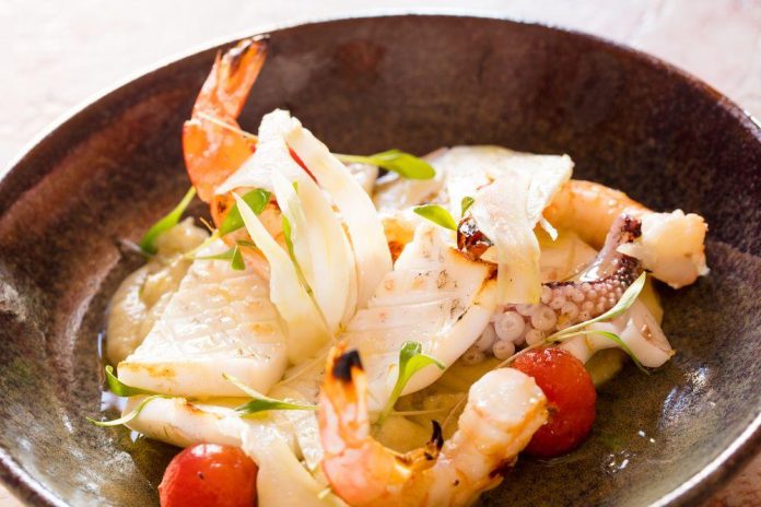 Receita do chef Bertílio Gomes Lulas do Anzol com camarão, funcho e tomate assado (4 pessoas) Ingredientes: . 800 g de lula grande do anzol . 8 camarões . q.b. de sal marinho . 4 bolbos de funcho . 200 g de tomate-cereja . q.b. de rebentos de coentro . 1 dl de azeite virgem extra . 1 limão . q.b. flor de sal . ½ dl de caldo de galinha . 1 dente de alho Preparação: Cortar o funcho em cubos, estufar num pouco de azeite e juntar o caldo de galinha, temperar, deixar cozer com o tacho tapado. […]