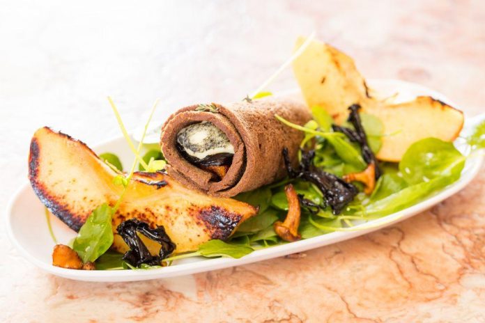 Queijo de cabra da Granja com pão de alfarroba e cogumelos, marmelos assados (4 pessoas) Ingredientes . 2 queijos de cabra da Granja dos Moinhos . 100 g de cogumelos silvestres (cantharellus e trompetas-da-morte) . ½ pão de forma de alfarroba . 2 marmelos . q.b de mel . ½ dl de azeite . 200 g de agrião . q.b de tomilho . ½ dl de azeite . 1 limão Preparação: Limpar os cogumelos com a ajuda de um pincel, sem molhar, saltear em azeite em lume brando, temperar de sal e tomilho. Envolver os marmelos em papel de alumínio […]