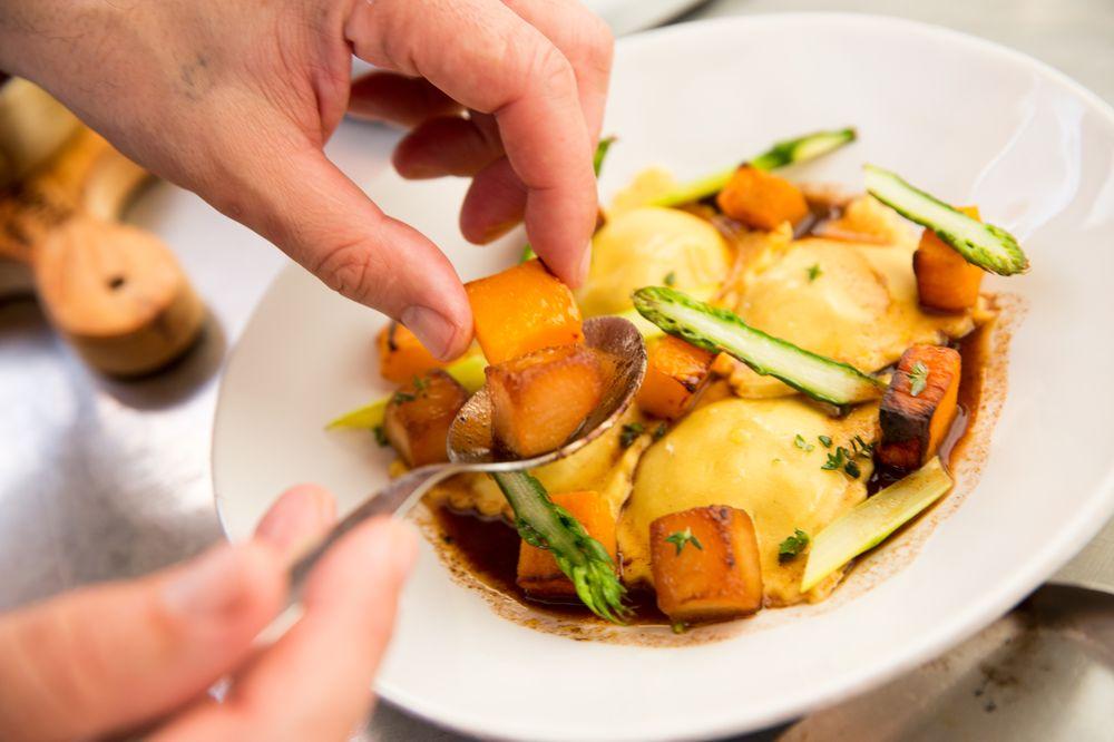 Receita de ravioli de lebre com nabos, abóbora e espargos (para 4 pessoas) Autor: chef Bertílio Gomes. É um dos mais ecléticos chefs do país, deixando marca positiva em cozinhas tão diversas como Hotel da Lapa, Bica do Sapato, Faz Figura, Virgula e Casa da Comida, até assumir há cinco anos os fogões do Chapitô à Mesa (Lisboa). Algarvio de nascimento, desenvolve uma cozinha de produto e proximidade, respeitando sempre a origem de cada ingrediente. Ingredientes Recheio de lebre: . 1 lebre pequena . 2 cebolas grandes . 1 cenoura . 1 talo de aipo . 1 […]