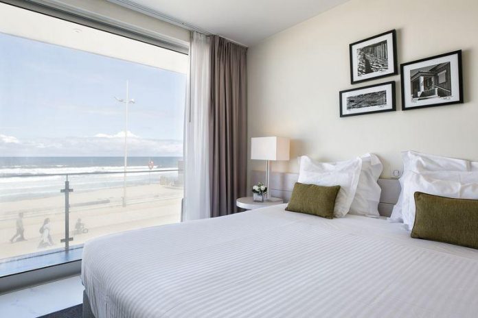 Atravessa-se a estrada, pés na areia, olhos no mar. Num piscar de olhos, um ou dois minutos, no máximo. Se a paisagem tem luminosidade quanto baste, um oceano que se perde no horizonte e toca no céu, areia para esticar a toalha e bronzear o corpo, aquele cheiro inconfundível a maresia, não faria qualquer sentido desperdiçar o cenário. Hotel frente ao mar, hotel abençoado por natureza. Andaime a andaime, a construção nunca esqueceu os privilégios geográficos. O desenho foi riscado com a paisagem na ponta dos dedos. Quartos luminosos e modernos, alguns com banheira de hidromassagem. Janelas que são paredes […]