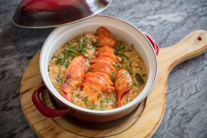 Receita de arroz de lavagante do chef Ingredientes 1 cebola picada 6 dentes alho laminados 2 lavagantes até 1kg cada 300 g arroz carolino 100 g coentros picados 100 g azeite 2 limões 400 g vinho branco 100 g manteiga Caldo de lavagante 1 cebola 1 cenoura 1 alho-francês 1 talo de aipo 1 tomate 50 g raiz de coentros 100 g polpa de tomate q.b. paprika fumada q.b. sal q.b. 5 pimentas moídas 100 g whisky 200 g vinho branco Preparação Lavagante Cozer o lavagante durante 20 minutos numa panela em água com 6% de sal. Arrefecer em água […]
