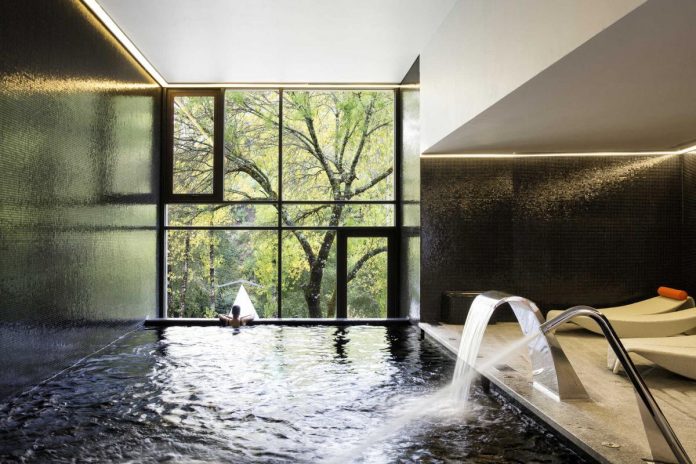 O spa tem duas piscinas (e há uma terceira, exterior, diante do bar do hotel), ambas aquecidas, uma de água termal – boa para a pele e para os ossos – a 34 graus, outra por debaixo do edifício mas aberta para o campo, a 38 graus. Além das apetecíveis piscinas, sem deixar o elemento água, há também duches quentes e frios, banheira de hidromassagem, duche escocês (com jatos à distância), duche Vichy de água termal a duas ou quatro mãos, duche com queda de água de sete metros, e ainda o equipamento anticelulítico Hydromel Watermass. E, claro, há gabinetes […]
