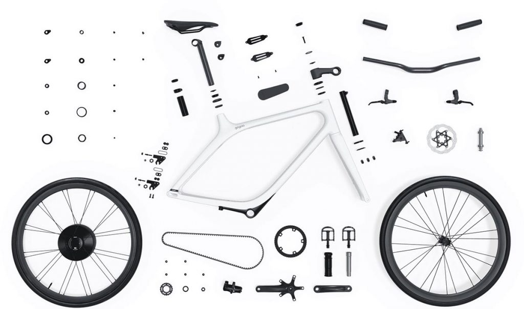O segredo para conseguir atingir esse baixo peso está no facto desta e-bike possuir uma estrutura totalmente de carbono.