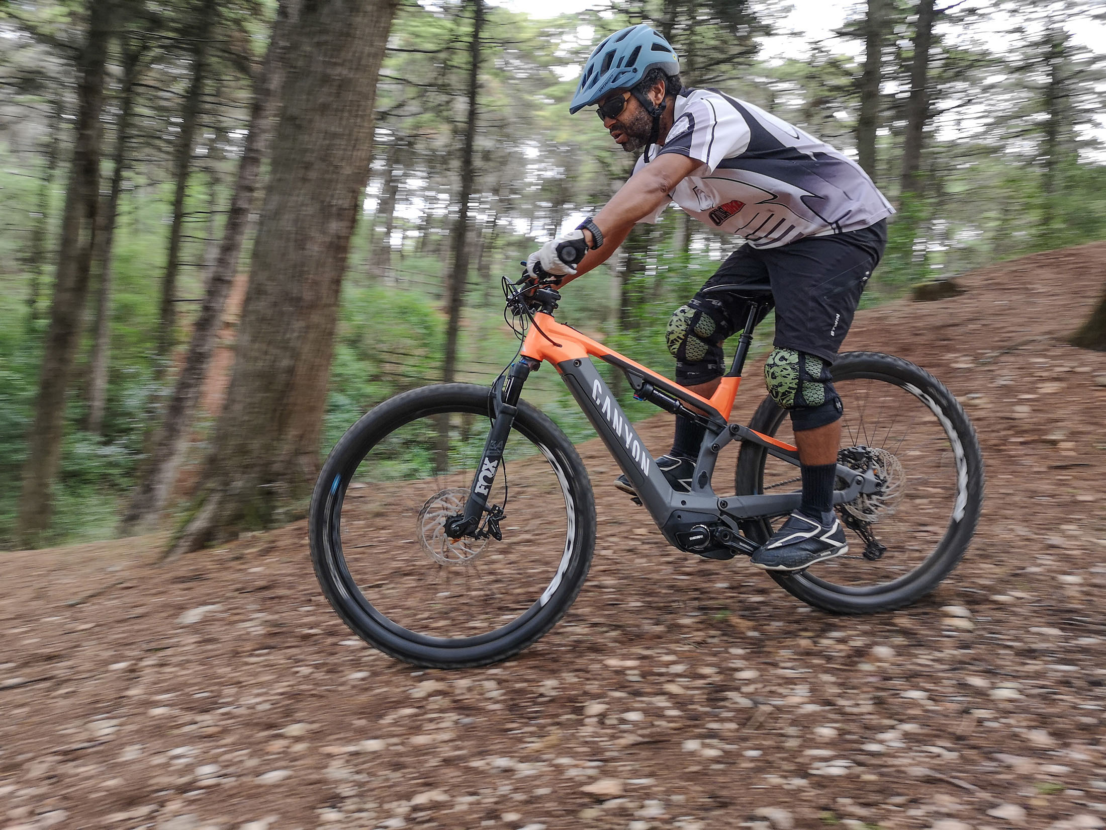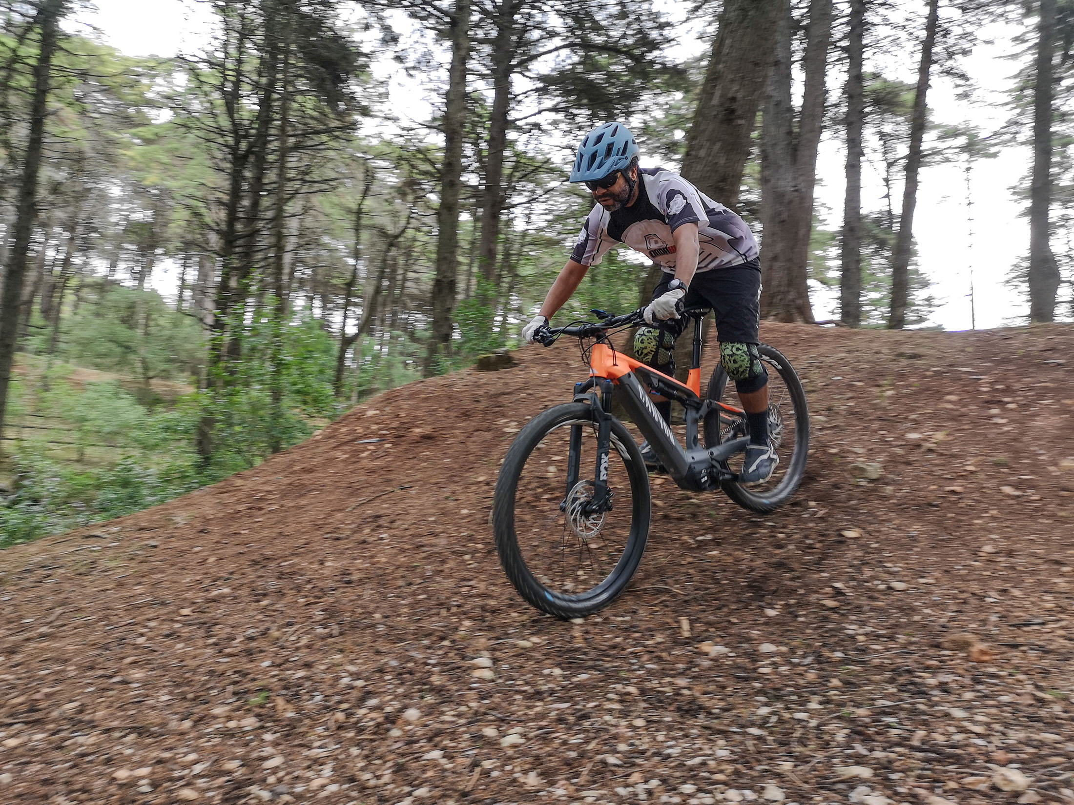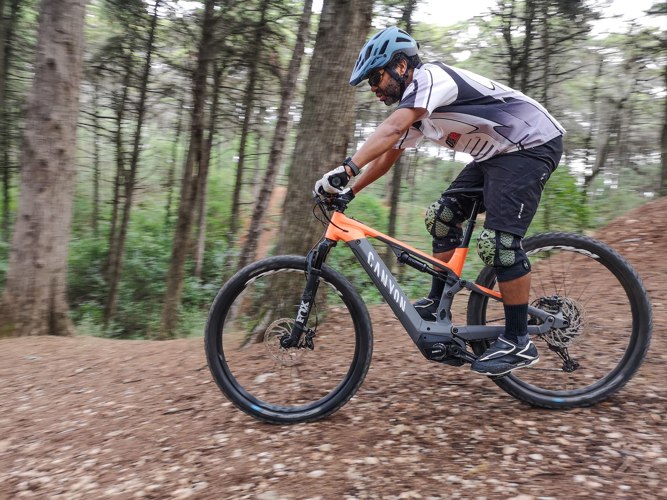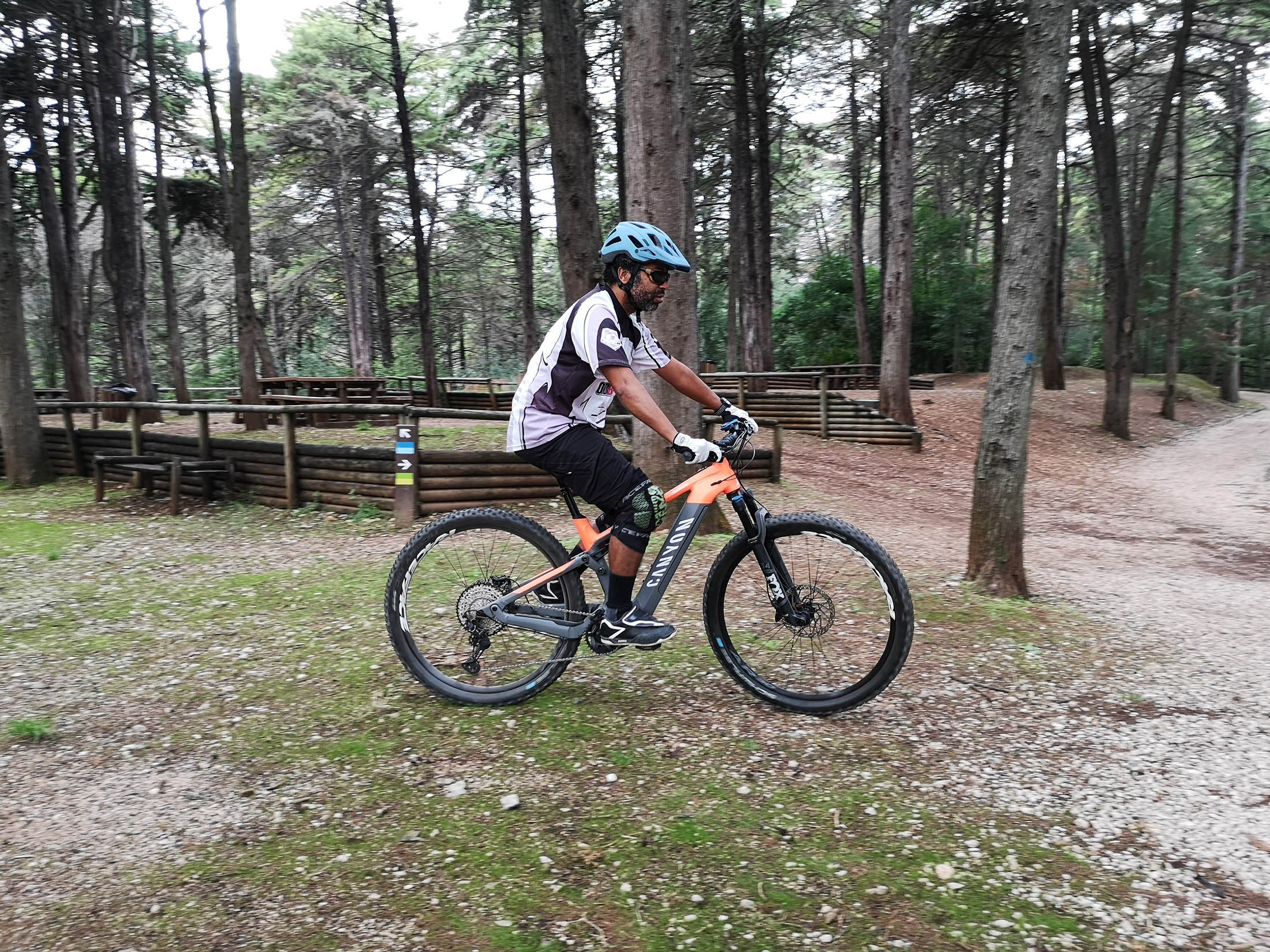 Nenhuma subida é um desafio para os 250 W do motor Shimano Steps E8000, em conjunto com a bateria de 504 Wh e a cassete de 12 velocidades. Nas descidas, a FOX trata das hostilidades com os 130 mm de curso disponibilizados pela forquilha 34 Rhythm e pelo amortecedor DPS Performance a transformarem as irregularidades dos trilhos em ciclovias, desde que devidamente afinados para o peso do ciclista. Claro que as rodas de 29” e os pneus 2,6 dão o seu contributo, mas o andamento facilmente aumenta de ritmo e é bom contar com os incansáveis travões Shimano MT com 4 pistões na frente e 2 atrás a “morderem” discos de 203 mm, sempre que é preciso parar.