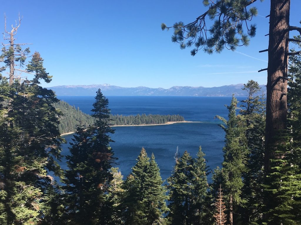 Quando deixei South Lake Tahoe percorri as margens do lago pelo lado Ocidental até ao Norte. A Estrada, estando elevada em relação ao lago em parte do trajeto, tem paisagens de cortar a respiração, com a floresta de sequoias a descer da montanha até às margens do lago e, mais à frente, uma baía, Eagles Bay, com uma pequena ilha no meio. Soberbo.