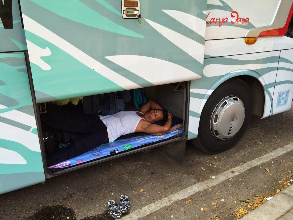 Mas o dia não começou bem. Ao sair do hotel de fraca qualidade situado nos últimos três andares de uma espécie de enorme centro comercial para ferramenta e material mecânico e eletrónico, o elevador travou de repente entre dois andares levando a que eu e um casal que também ali viajava, quase fôssemos atirados ao chão. A mulher assustou-se mas o namorado ainda estava com mais medo. O que vale é que a cena durou pouco tempo. Sem tocarmos em qualquer botão o elevador voltou a arrancar e parou tranquilamente no rés-do-chão. Felizmente era a última vez que tinha que andar nele. Apanhei um táxi à porta já munido do que pensava serem todos os papéis necessários para levantar a moto, mas o taxista não deu com o local onde estava a moto no caos que é o porto de Jakarta e acabou por me deixar noutro táxi local, que dizia saber muito bem onde eu queria ir. Não tínhamos andado mais de cinco minutos quando percebi que me estava a levar para longe do sítio previsto. Fartei-me de refilar e insultar o homem, mas às tantas comecei a achá-lo com um ar estranho. Só me dizia “slow, slow”, revirava a cabeça e quando eu me chegava à frente e olhava para ele puxava a camisa para cima a tapar-lhe a cara até aos olhos.