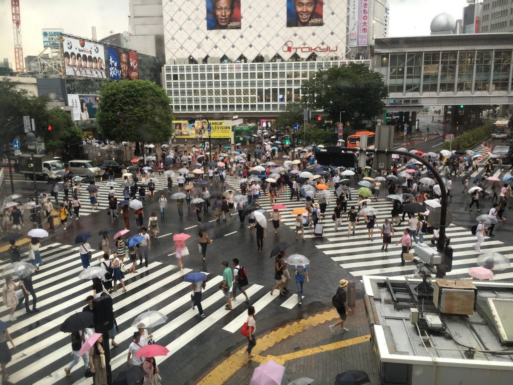 Por sugestão da “Time” americana comecei por subir ao segundo andar do Starbucks café de Shibuya Crossing, que na pratica é um primeiro andar porque eles aqui não contam o R/C ou 0 a que chamam 1º. De aí temos vista para um dos cruzamentos mais movimentados de Tóquio, que quis filmar. A curiosidade é que neste cruzamento, às tantas, os sinais luminosos ficam encarnados para todas as cinco entradas de carros e os dos peões verdes pois para além das passadeiras que existem na entrada de cada uma das ruas há uma outra maior que atravessa todo o cruzamento em diagonal, razão pela qual os carros deixam de passar e um enxame de gente apressada invade a estrada. Espetacular visto de cima.