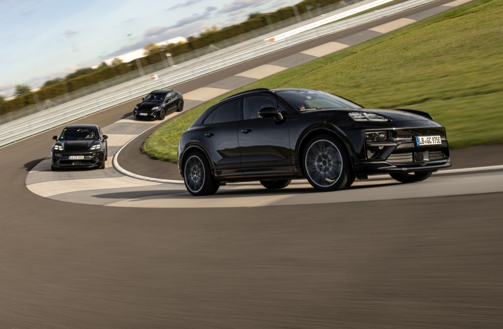 Para este pequeno contacto no Centro de Experiências de Leipzig, junto à fábrica onde são produzidos os novos Panamera e estes mesmos Macan, os quatro modelos para ‘boleias’ tinham por missão mostrar as credenciais dinâmicas do novo SUV compacto, sempre apelando a uma filosofia de que o foco está na condução, mesmo quando os motores de combustão ficaram no passado. Somos agraciados com unidades totalmente camufladas – embora as linhas sejam facilmente observáveis – e tapados no interior para não expor a configuração do habitáculo, mais para os momentos em que cumpre testes fora do recinto do que neste evento…