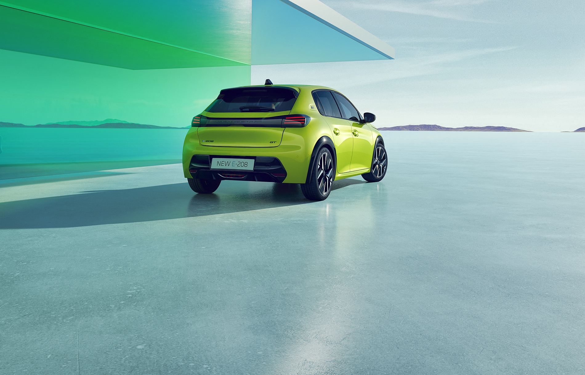 A tarefa de atualizar o 208 coube, novamente, a Matthias Hossann, diretor de design da Peugeot, líder da equipa que, admite, “enfrentou, com entusiasmo, o desafio apresentado pelo novo 208. Quisemos sublinhar ainda mais a sua personalidade já forte, sem perder o espírito global do seu design. A nova dianteira com a nova assinatura luminosa Peugeot e, na traseira, as reinventadas luzes de três garras deram ao design um aspeto renovado e uma postura mais felina, mantendo a silhueta esculpida e atlética que os clientes adoram”.Essa mesma assinatura luminosa vai buscar a sua inspiração ao 9X8 Hypercar de competição que, depois, inspirou também os renovados 2008, 508 e 508 SW. É composta por três longas garras luminosas verticais integradas nas inserções em preto brilhante do para-choques, as quais foram deslocadas para o rebordo exterior do veículo. Nas versões GT, o efeito marcante das três garras de luz é alargado à função de iluminação dos faróis 100% em LED, utilizando três módulos óticos independentes. A insígnia ‘PEUGEOT’ destaca-se, agora, a toda a largura da tampa da bagageira, snedo que o E-208 recebe um emblema “E” em dois tons de azul e branco.