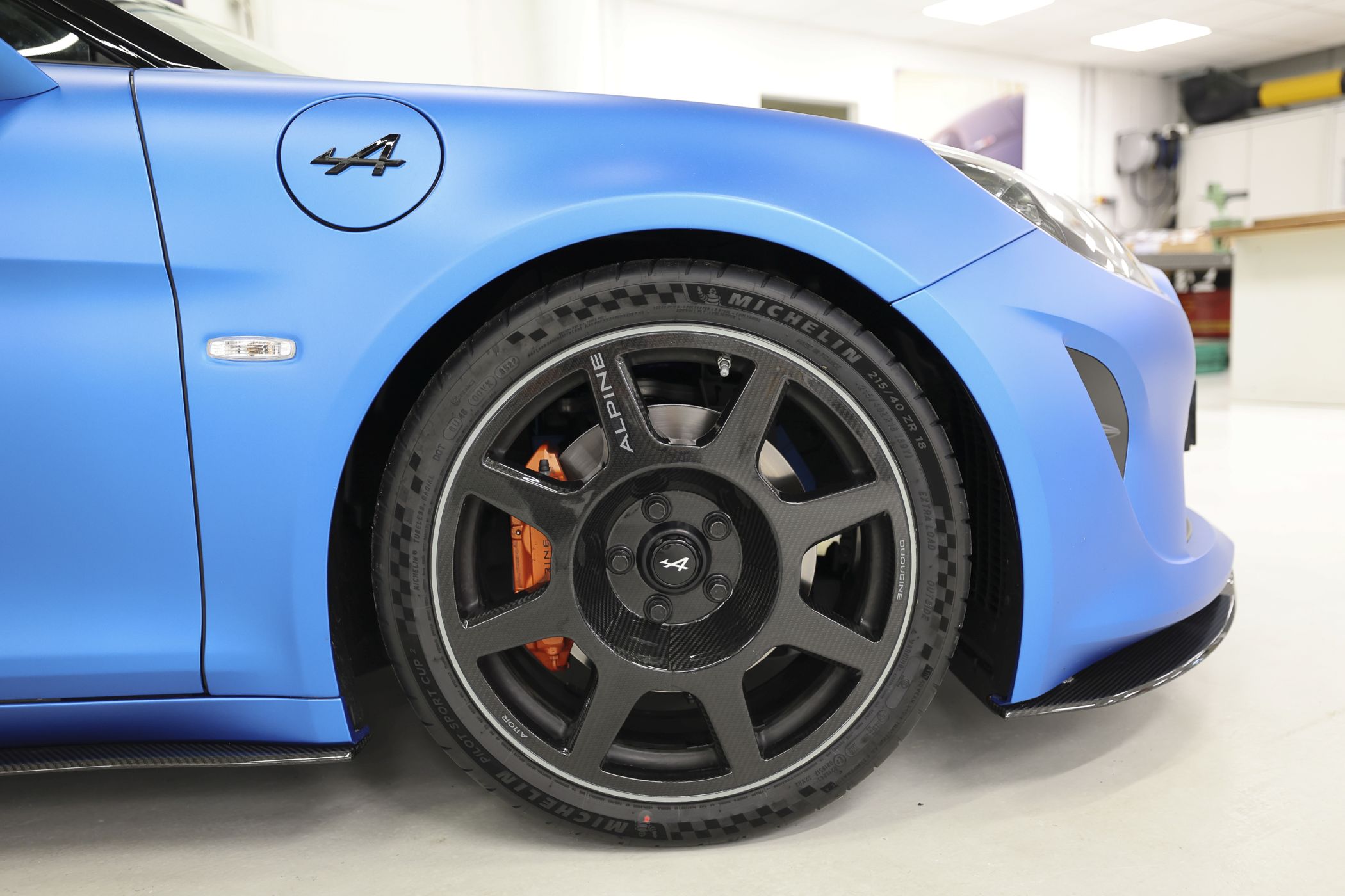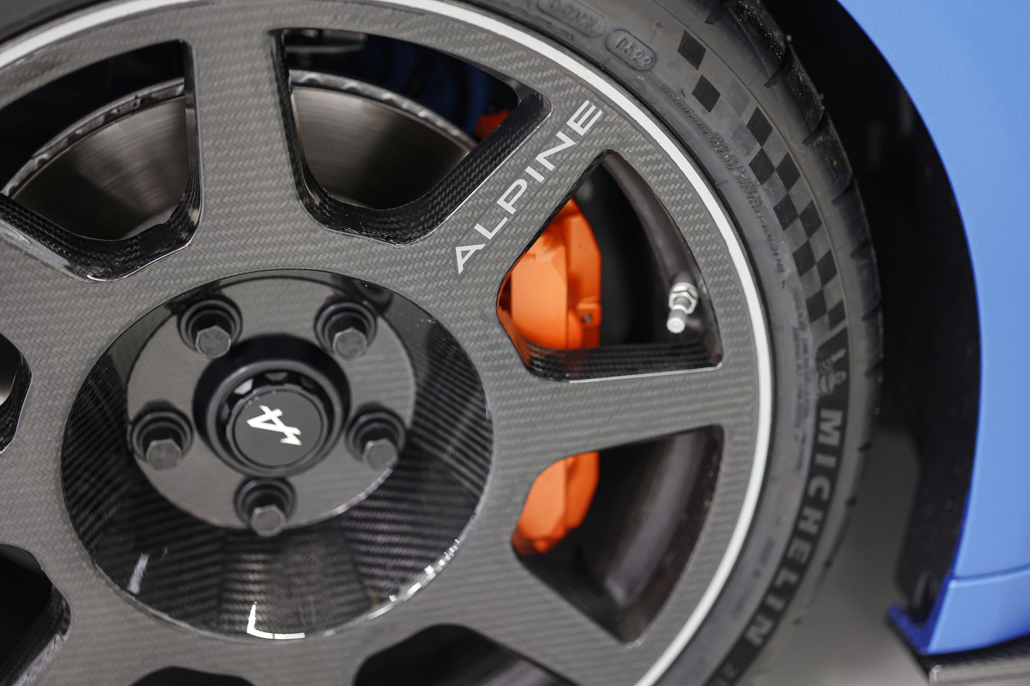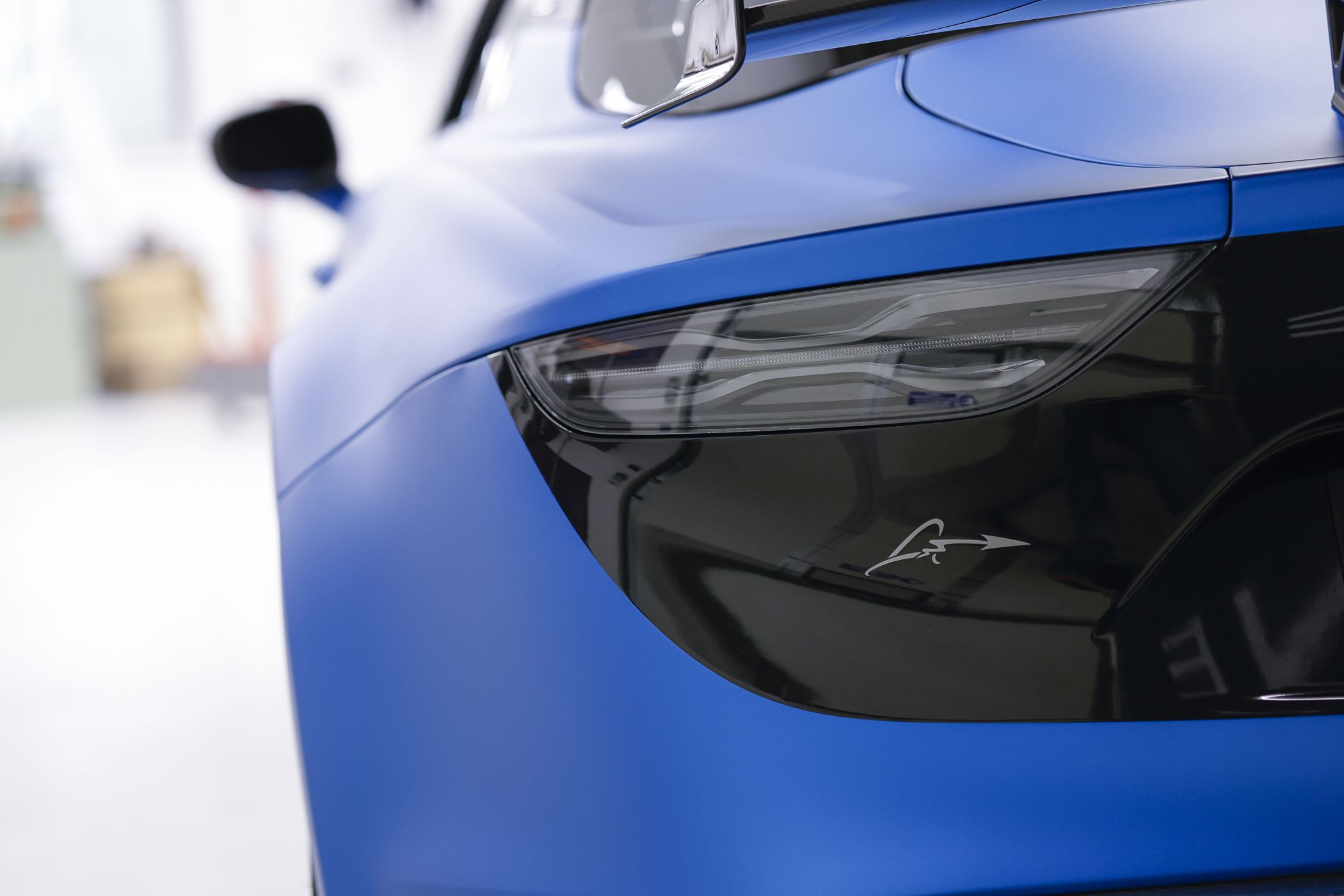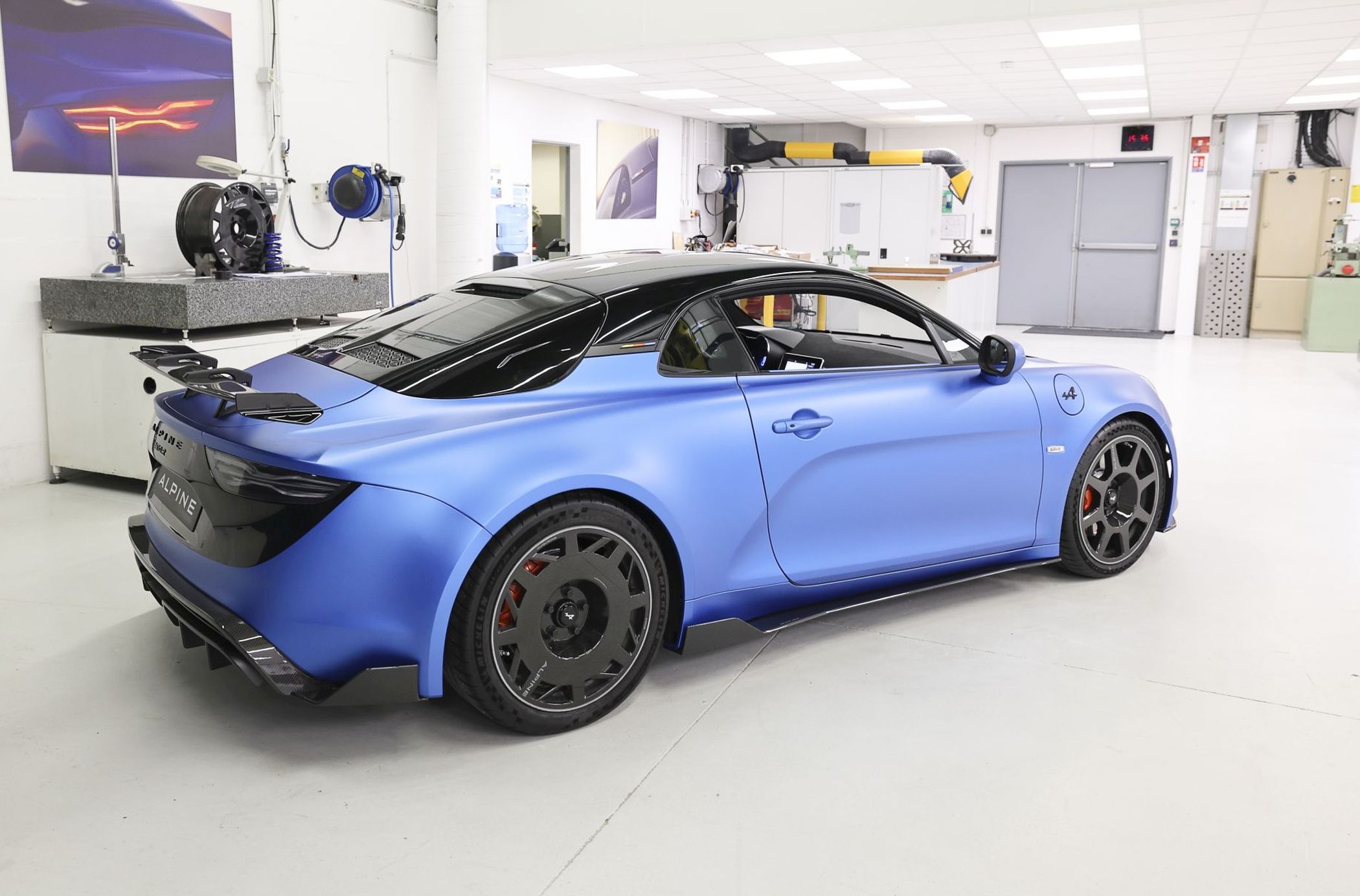 A cor azul ‘Racing Matte Blue’ é um dos apontamentos com maior destaque, tratando-se da mesma tonalidade utilizada no monolugar da temporada de 2022, o A522, combinando-se com o capot e a cobertura traseira em fibra de carbono pintada parcialmente, com as cores azul mate e ‘Deep Black’ (ao contrário do acabamento em carbono exposto no A110 R).