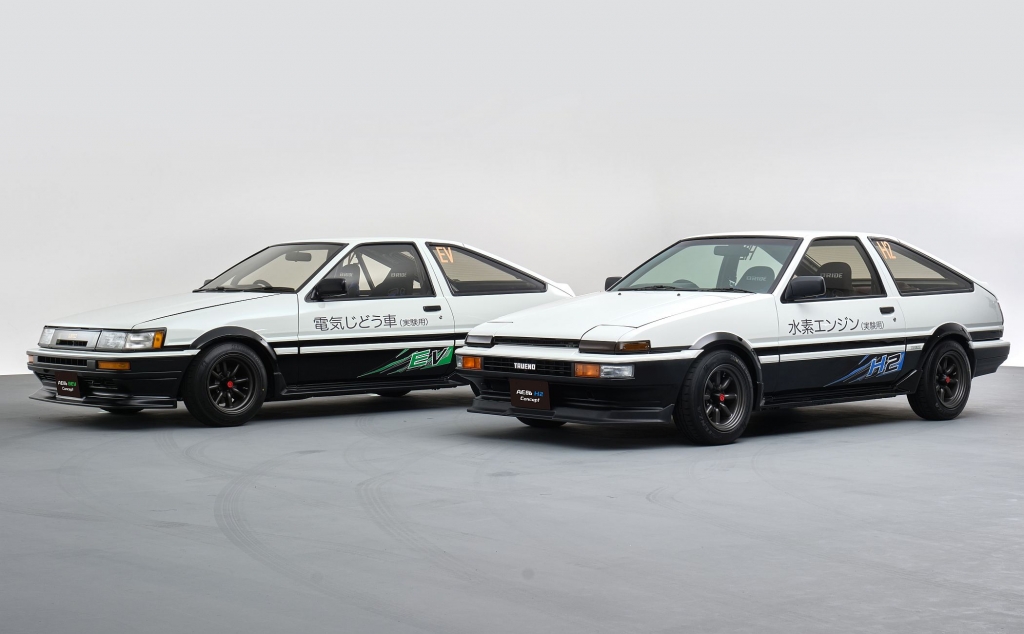 Em palco apareceram então dois Toyota que ainda hoje são considerados dos mais emblemáticos por muitos adeptos da marca, um AE 86 Trueno e um Levin, o primeiro alimentado a hidrogénio e o segundo transformado em elétrico.