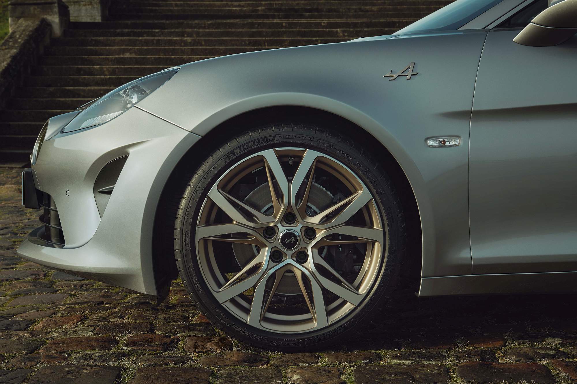 O A110 Légende GT tem como ponto de partida o modelo de base, mas adiciona-lhe alguns elementos específicos por dentro e por fora. No exterior, é proposto em três cores de carroçaria (Mercury Silver, que é uma novidade, Deep Black e Abyss Blue), juntando-se a monogramas dourados ‘Alpine’ e jantes de 18 polegadas Serac, também com a mesma tonalidade de acabamento. Os farolins brancos translúcidos com tecnologia LED diferenciam também esta versão especial.