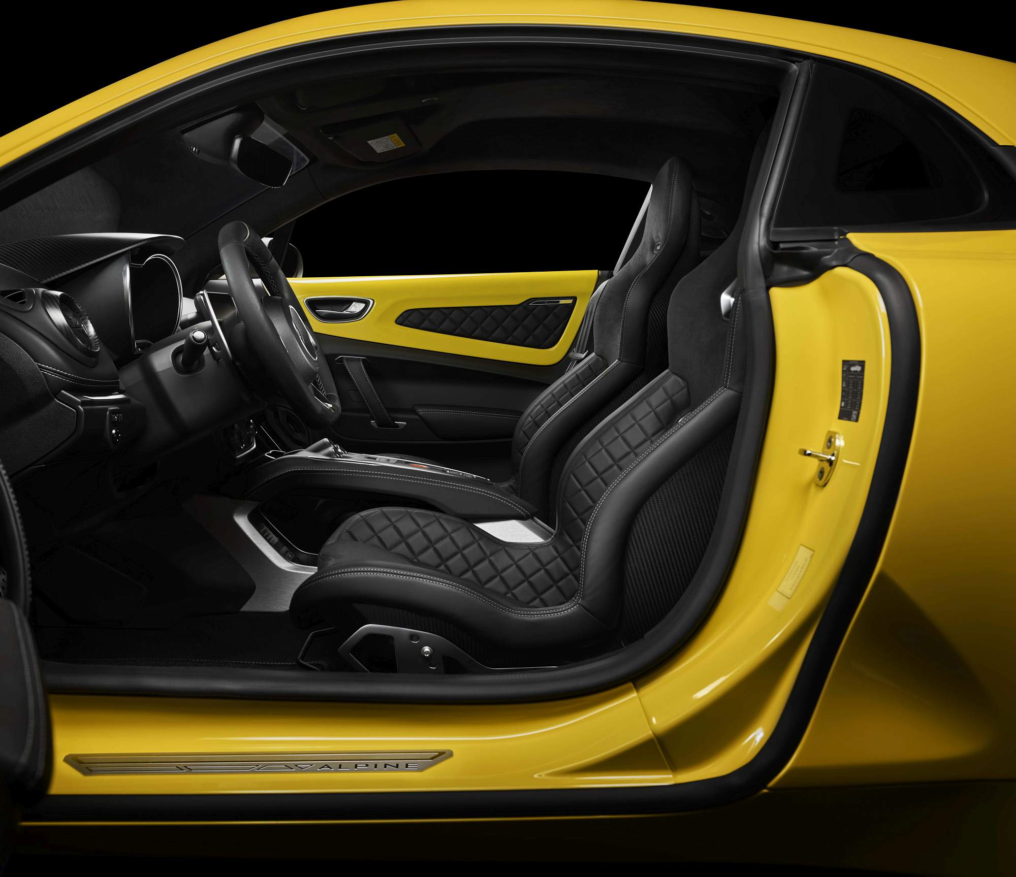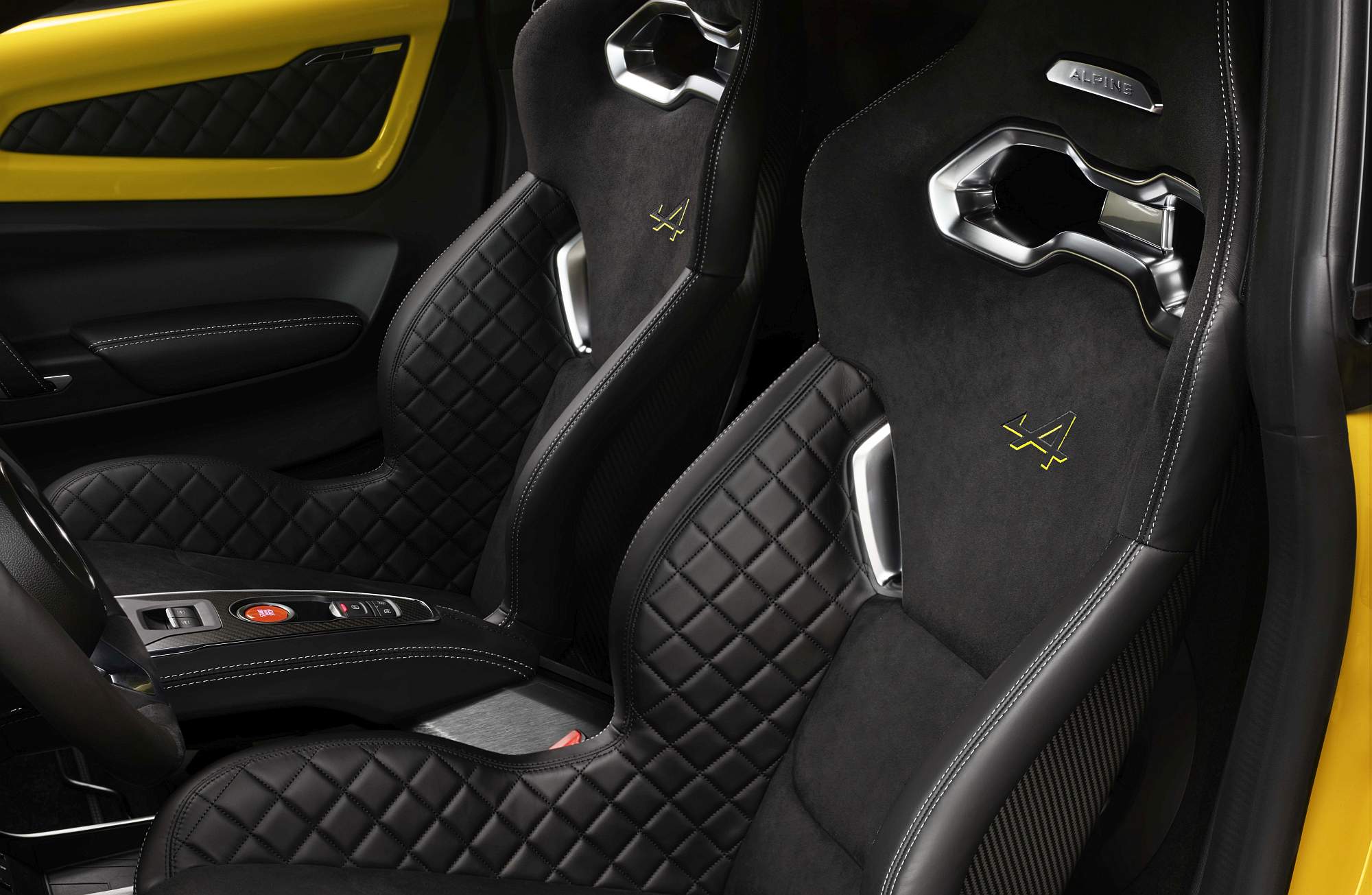 No interior, além da placa identificativa na consola central, o A110 Légende GT conta ainda com soleiras das portas retro-iluminadas com o emblema da ‘Alpine’, a que se juntam bancos de maior conforto da Sabelt com ajuste em seis vias, com acabamentos em couro de tonalidade âmbar, que também se pode encontrar nas portas. O volante passa a ter marco central e há novos elementos em carbono brilhante. Para assinalar o seu lado prático, passa ainda a dispor de um kit de três malas de viagem feitas no mesmo material dos bancos. Há ainda um novo espaço de arrumação entre os dois bancos.