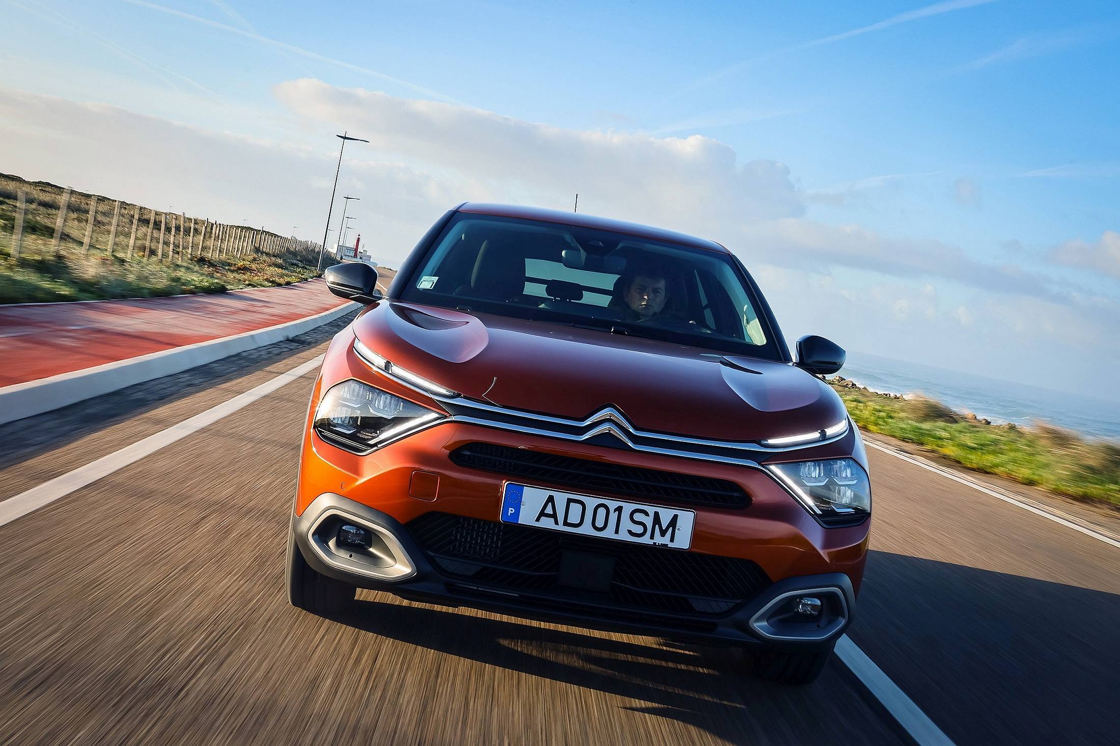 Em tempos de pandemia e com a situação sanitária a agravar-se, tornam-se obrigatórias novas abordagens para estes breves contactos iniciais com os novos automóveis: antigamente, havia pares a bordo, agora vai cada um por si. Nesse âmbito, cada jornalista teve pouco mais de uma hora com um C4 térmico (com motor 1.2 PureTech de 130 CV com caixa EAT8) e com o C4 elétrico. Começámos por este último.