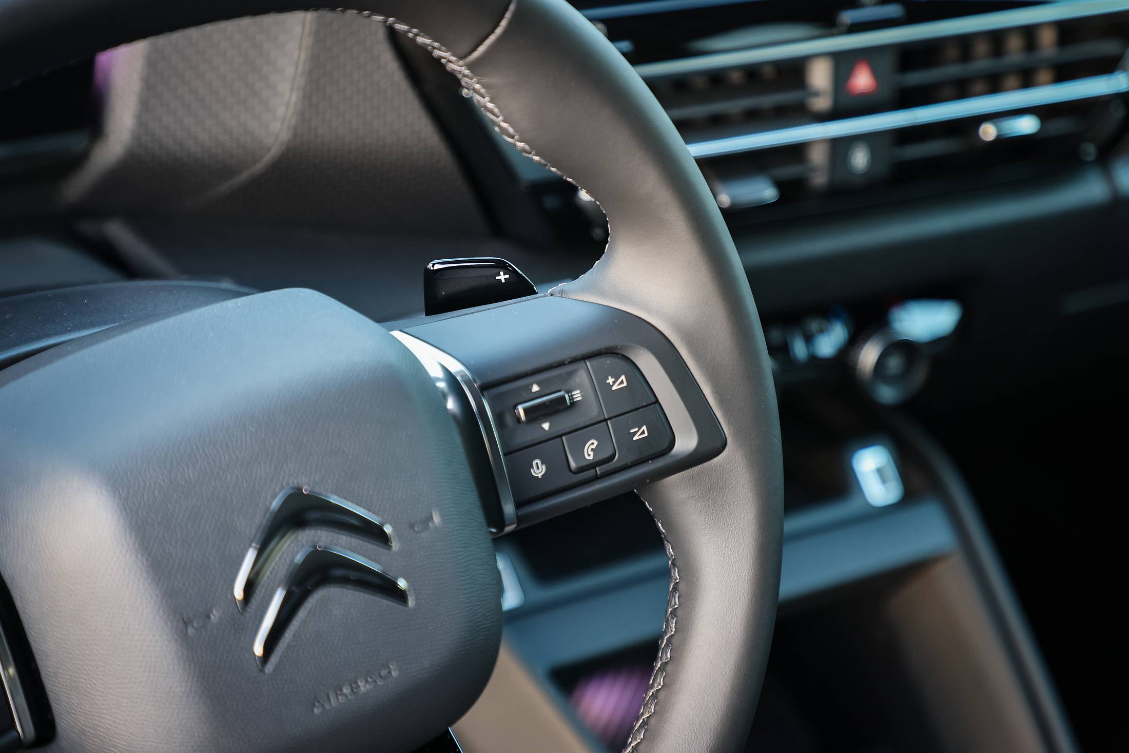 Chegados ao momento de trocar de veículo, a segunda viagem fez-se com o C4 equipado com o motor 1.2 PureTech de 130 CV associado à caixa automática de dupla embraiagem de oito velocidades (EAT8). Por fora não há diferenças evidentes para o ë-C4, mas por dentro há uma diferença ao carregar-se no botão de ignição – desperta o motor de três cilindros e a insonorização, que parecia tão boa no ë-C4, perde-se um pouco. Contudo, essa sensação decorre apenas nos primeiros segundos e metros da viagem, tornando-se depois mais silencioso.