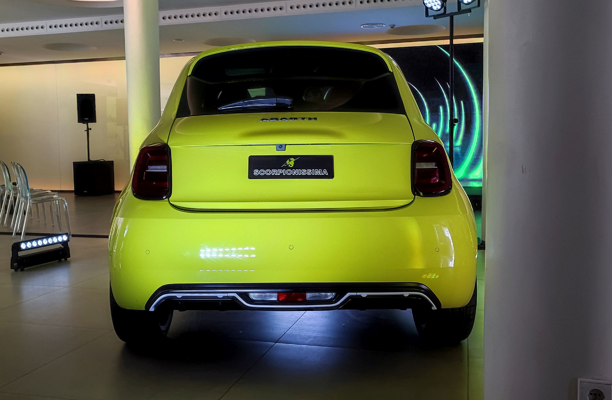 Para a companhia italiana que mantém os seus laços muito estreitos à Fiat, a ideia do 500e é transformar a sustentabilidade em adrenalina, sempre com uma abordagem mais radical, sobretudo quando pintado na cor Verde Ácido, uma das duas disponíveis no lançamento (a outra é a Poison Blue).