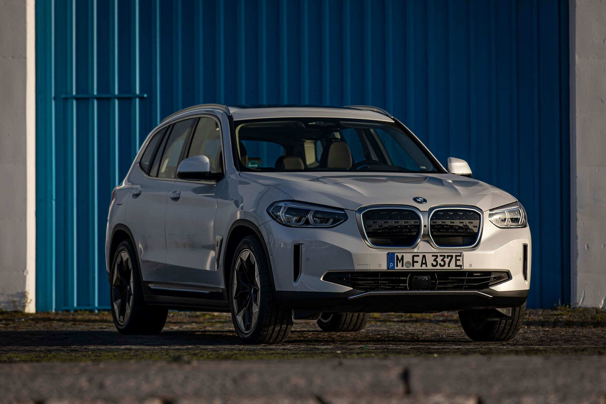 Nesse mesmo sentido, o iX3 vem preencher um espaço importante na gama da BMW, que sabe da importância de contar com mais modelos eletrificados na sua gama de modelos. Visualmente, poucos são os indícios de que o iX3 é elétrico, uma vez que o formato não muda em relação a uma versão a gasolina, por exemplo. O símbolo é sempre envolvido numa auréola azul, enquanto a grelha surge coberta, fator motivado pela substancialmente menor necessidade de refrigeração. Mais reveladores são os apontamentos inferiores a azul na carroçaria (ou cinzentos) e a ausência de tubos de escape, que confirmam a ausência de um motor de combustão.