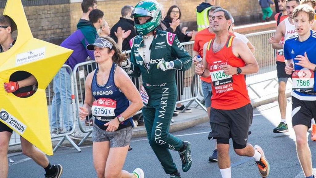 Tudo porque, no passado domingo, George Crawford, engenheiro informático da equipa da equipa britânica de F1, a Aston Martin Cognizant Formula One Team, decidiu palmilhar os mais de 42 quilómetros da mítica Maratona de Londres equipado com o fato de corrida do piloto Lance Stroll, luvas e com capacete incluídos. Crawford conseguiu terminar o percurso em 3h58m, feito que mereceu lugar no livro do Guinness: foi o mais rápido de sempre vestido como um piloto de F1.