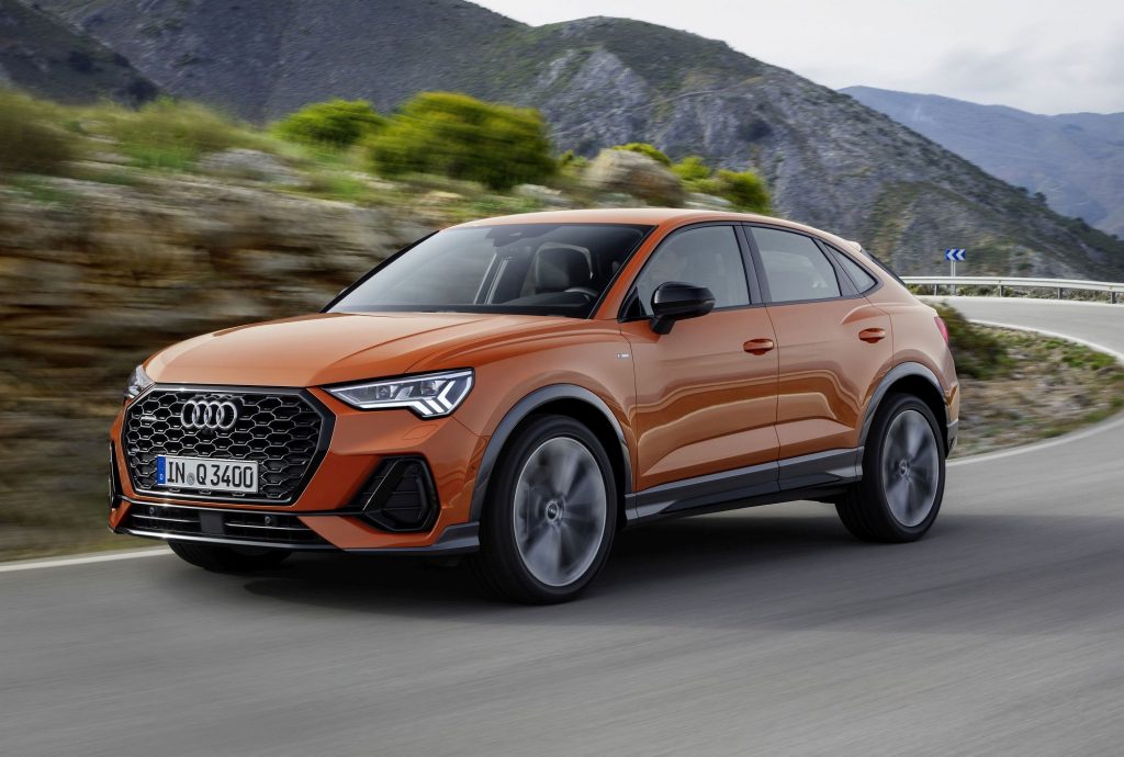 Face ao Q3 ‘racional, entenda-se, a linha de tejadilho está situada 3 cm mais abaixo, sendo também 16 mm mais comprido, o que lhe confere uma pose mais atlética, mesmo quando parado. Mas, embora partilhando muitos dos componentes com o Q3, assume identidade própria, como por exemplo na grelha dianteira mais larga com contorno em preto ou alumínio, linha de cintura mais baixa, zona inferior da carroçaria com possibilidade de contar com elementos em alumínio ou à cor da carroçaria, bem como nas jantes de 17 polegadas que são de série no modelo de entrada. Na traseira, iluminação em LED, com difusor específico e um longo spoiler superior junto ao óculo.