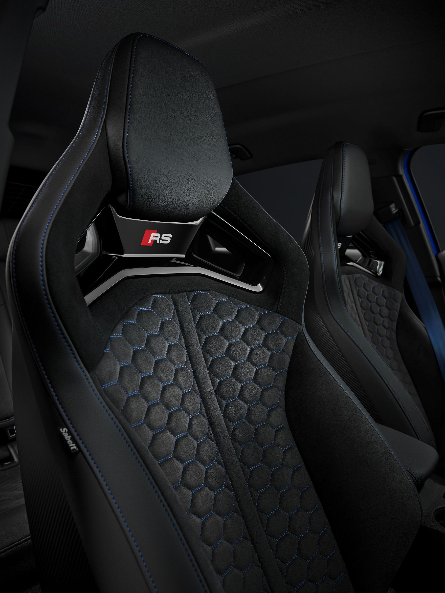 O motor está acoplado à caixa S tronic de sete velocidades, de dupla embraiagem, com tempos de passagem curtos entre cada relação para desportividade reforçada. A sonoridade, por seu turno, continua evocativa da sua potência graças a ao escape desportivo com um silenciador modificado e novas saídas de escape em preto brilhante, sendo ainda auxiliado pelo sequência de ignição característica dos seus cinco cilindros (1-2-4-5-3). A borboleta de controlo da sonoridade do escape foi também ligeiramente alterada para permitir uma sonoridade mais presente no interior quando nos modos ‘Dynamic’, ‘RS Performance’ e ‘RS Torque Rear’.