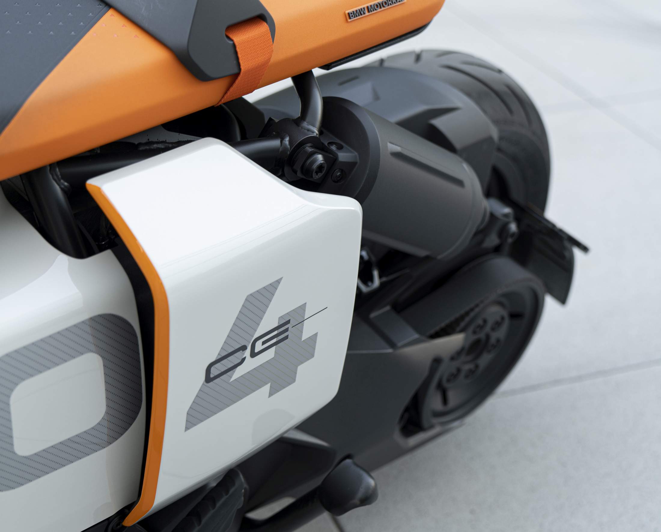 A sua compleição moderna surge ainda reforçada pela escolha de duas cores, entre o acabamento Mineral White e o negro matizado que se pode encontrar nas áreas técnicas, como na bateria, tornando essa mesma tecnologia numa parte do design. Por esse motivo, a marca decidiu não cobrir por completo as laterais da moto na traseira. Ao invés, estendem-se como ‘asas’ que permitem observar o motor, o sistema de refrigeração, o braço oscilante lateral, o braço de suspensão e a correia.