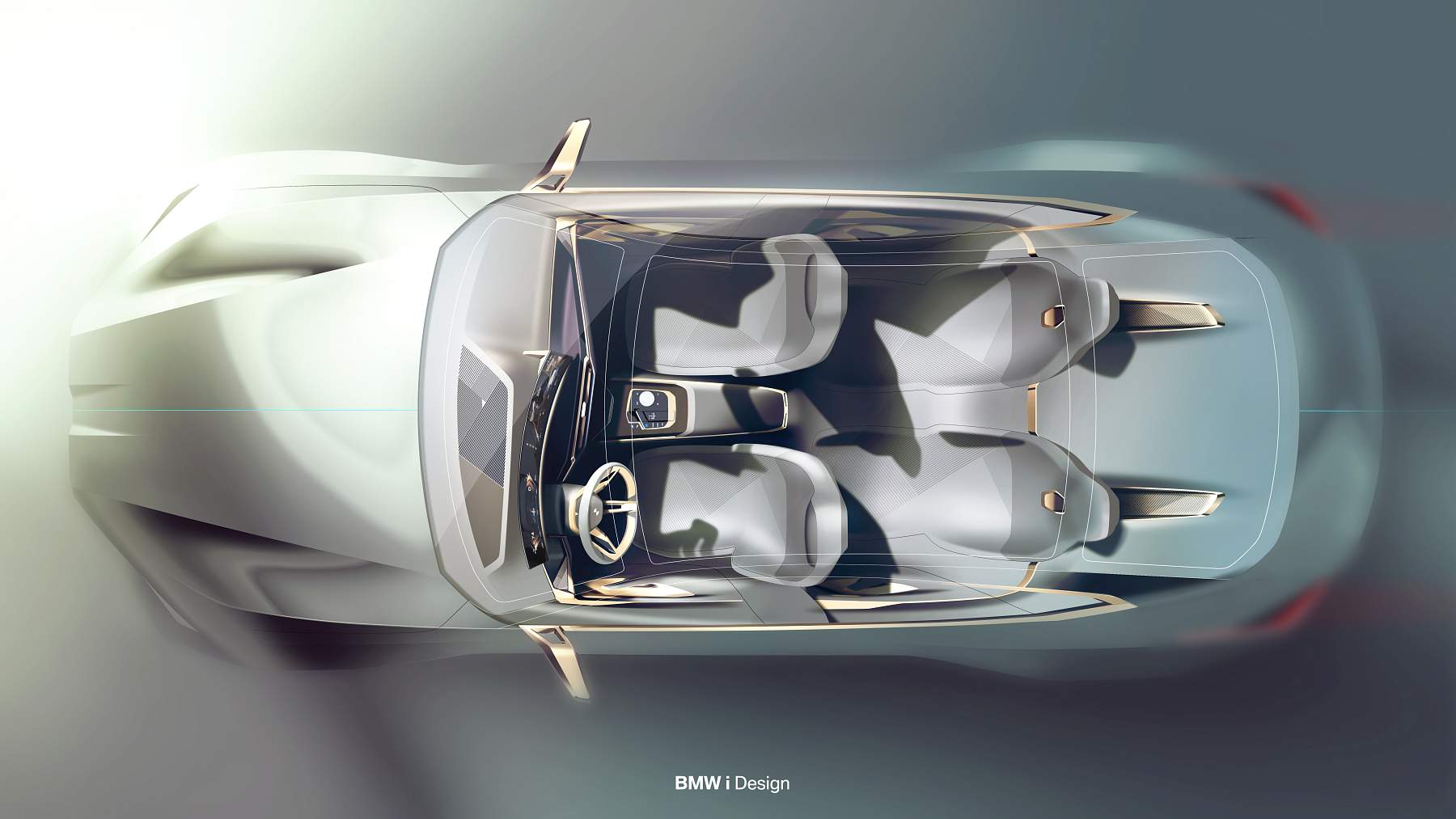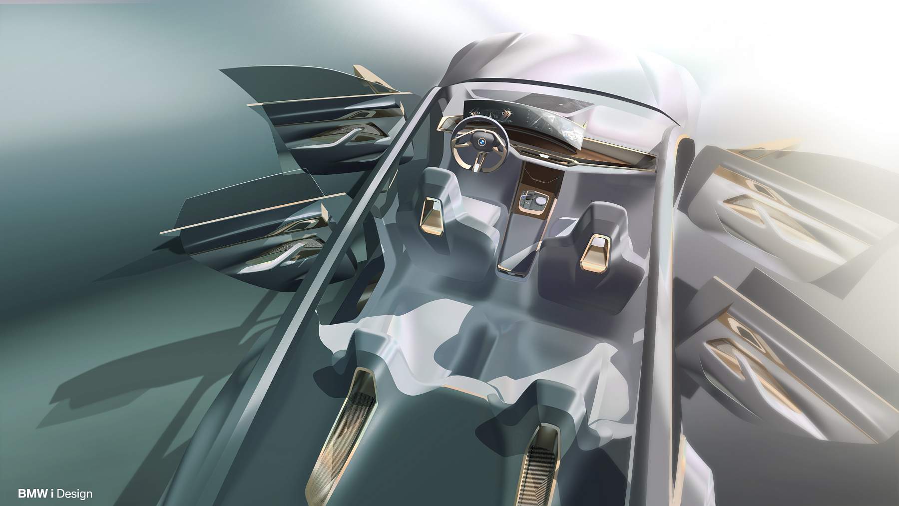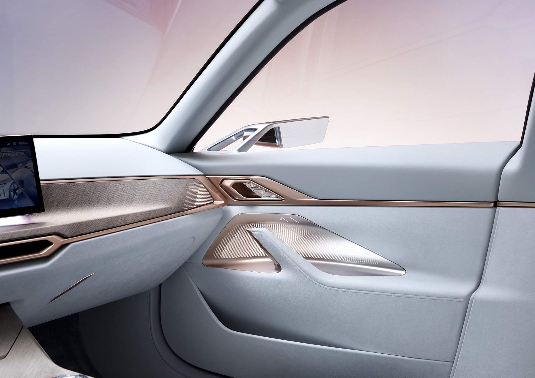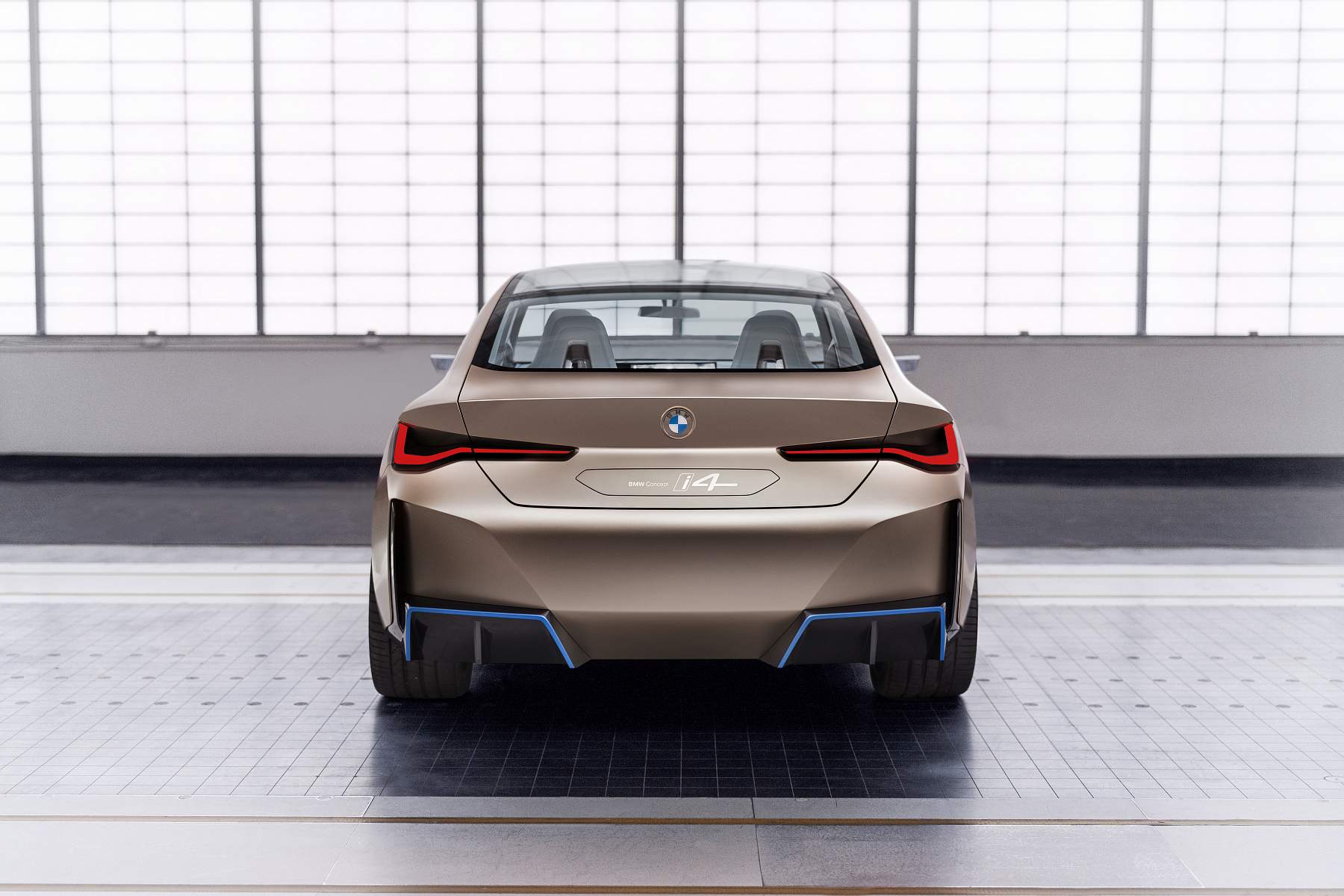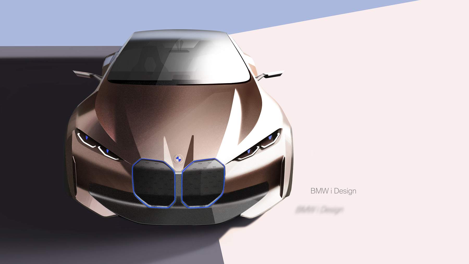 Além do desenho esguio com muito cuidado aerodinâmico, o Gran Coupé elétrico da marca alemã exibe proporções compactas mas distância entre eixos alongada, assim oferecendo muito espaço a bordo num perfil desportivo e funcional que as quatro portas possibilitam. A pintura exterior acobreado Frozen Light Copper recupera uma tonalidade já apresentada no Vision iNEXT, mostrando um jogo de cores original.