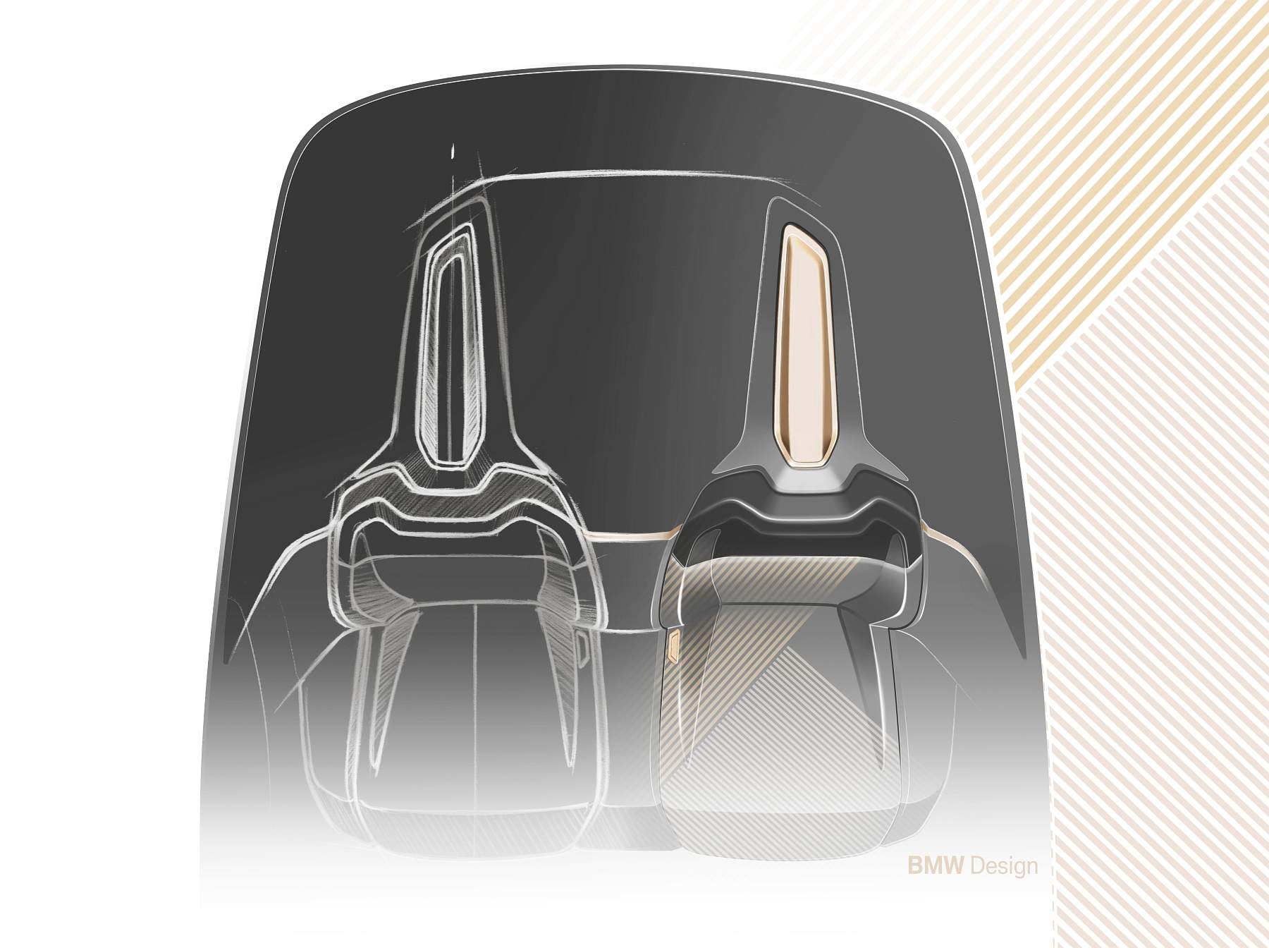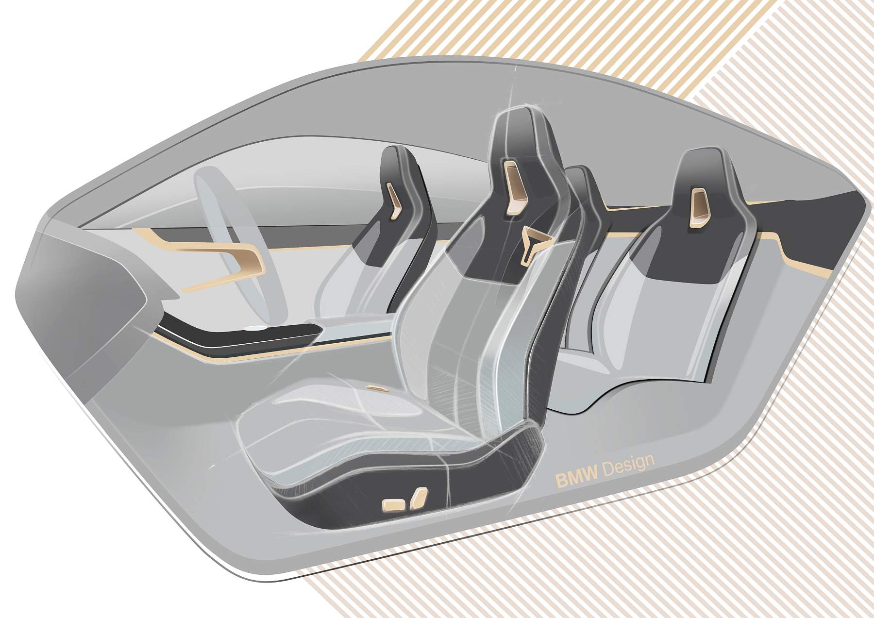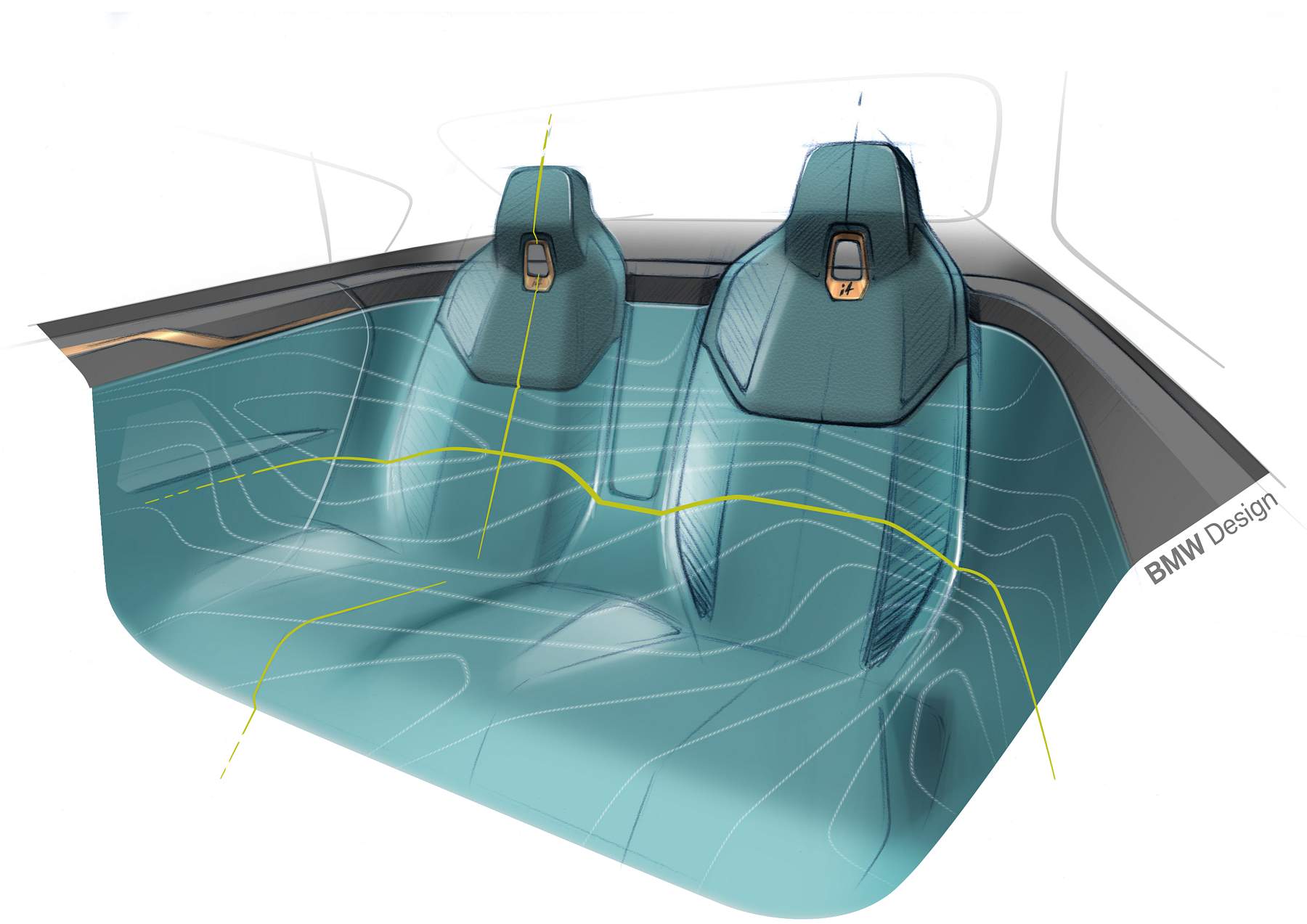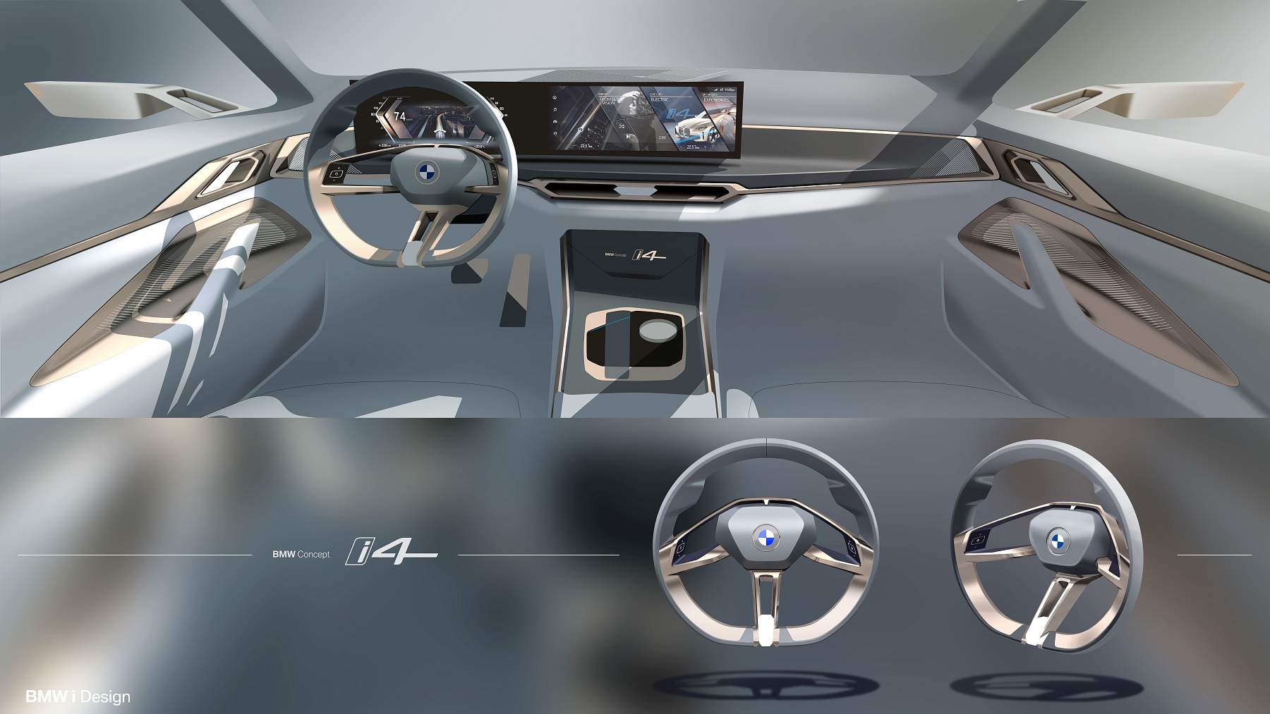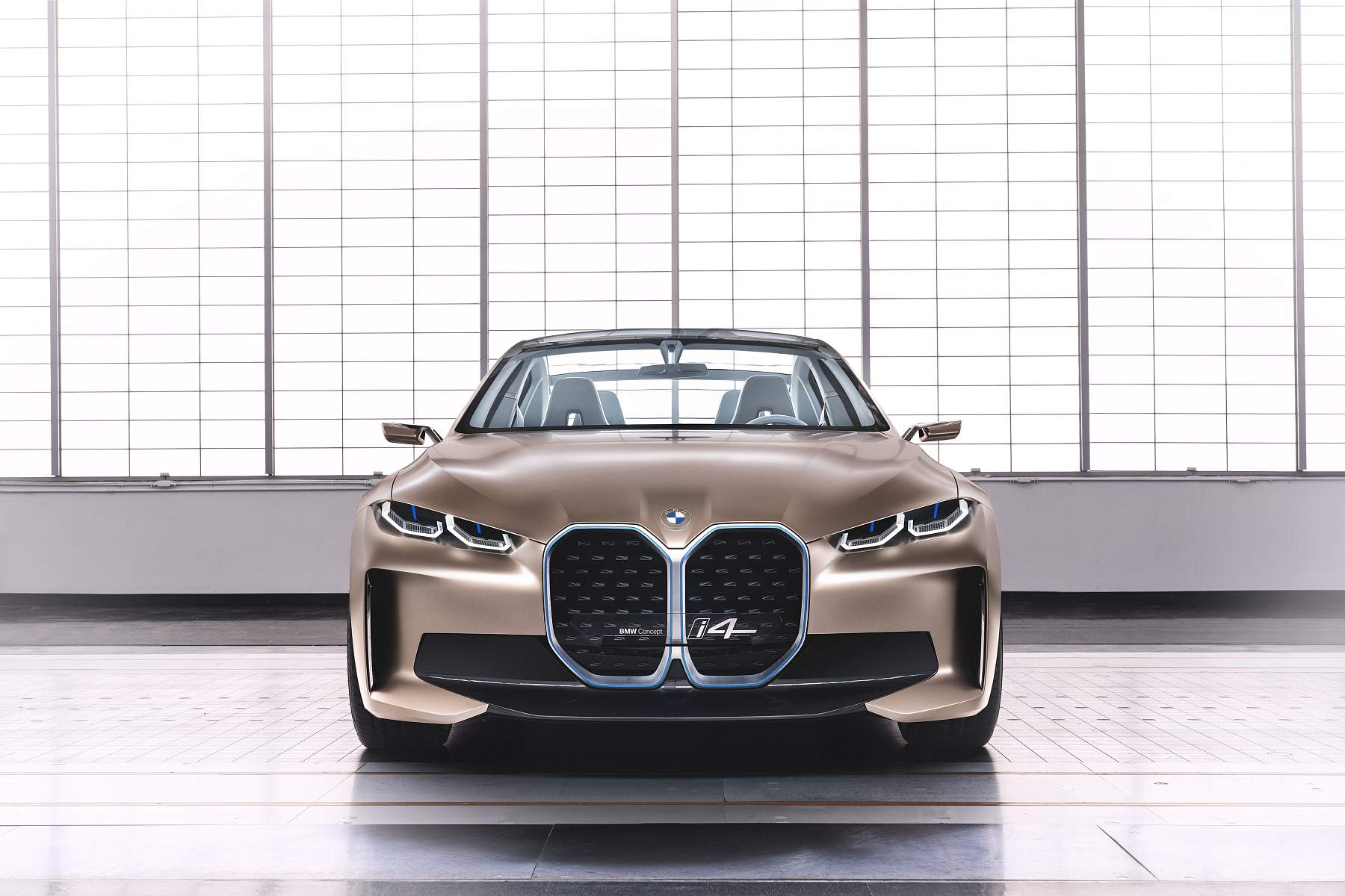 Além do desenho esguio com muito cuidado aerodinâmico, o Gran Coupé elétrico da marca alemã exibe proporções compactas mas distância entre eixos alongada, assim oferecendo muito espaço a bordo num perfil desportivo e funcional que as quatro portas possibilitam. A pintura exterior acobreado Frozen Light Copper recupera uma tonalidade já apresentada no Vision iNEXT, mostrando um jogo de cores original.