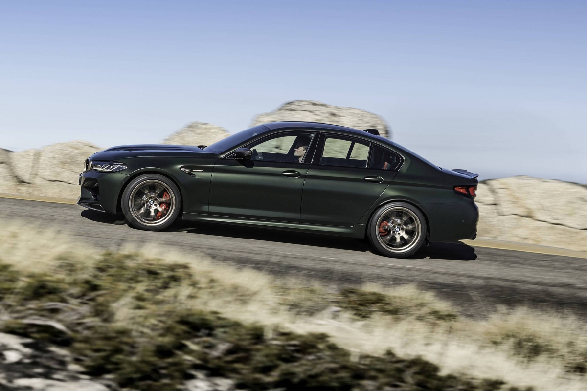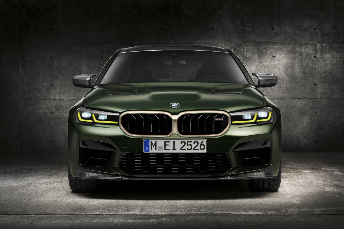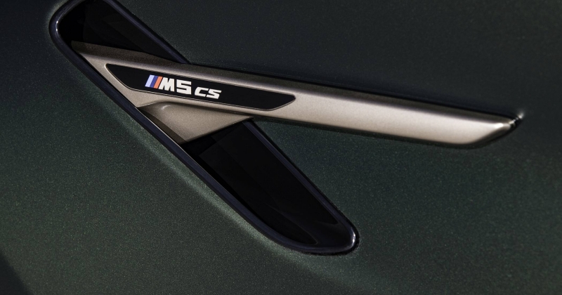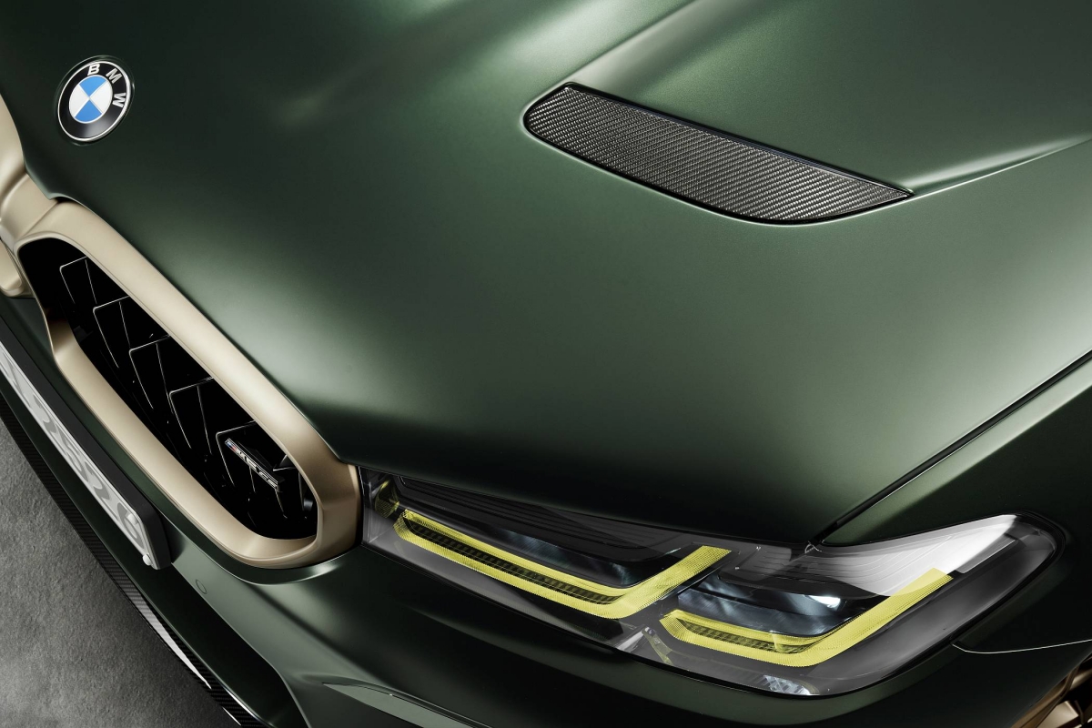 O exterior conta ainda com alguns apontamentos em bronze dourado, como a grelha dianteira, os logótipos ‘M5 CS’ e as ‘guelras’ laterais, a mesma que é aplicada nas jantes M de 20 polegadas com design em ‘Y’. Os faróis têm configuração em ‘L’ para a tecnologia BMW Laser com iluminação amarela em bvez de branco para os mínimos, máximos ou luzes de boas-vindas, evocando a recordação dos carros de competição.