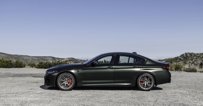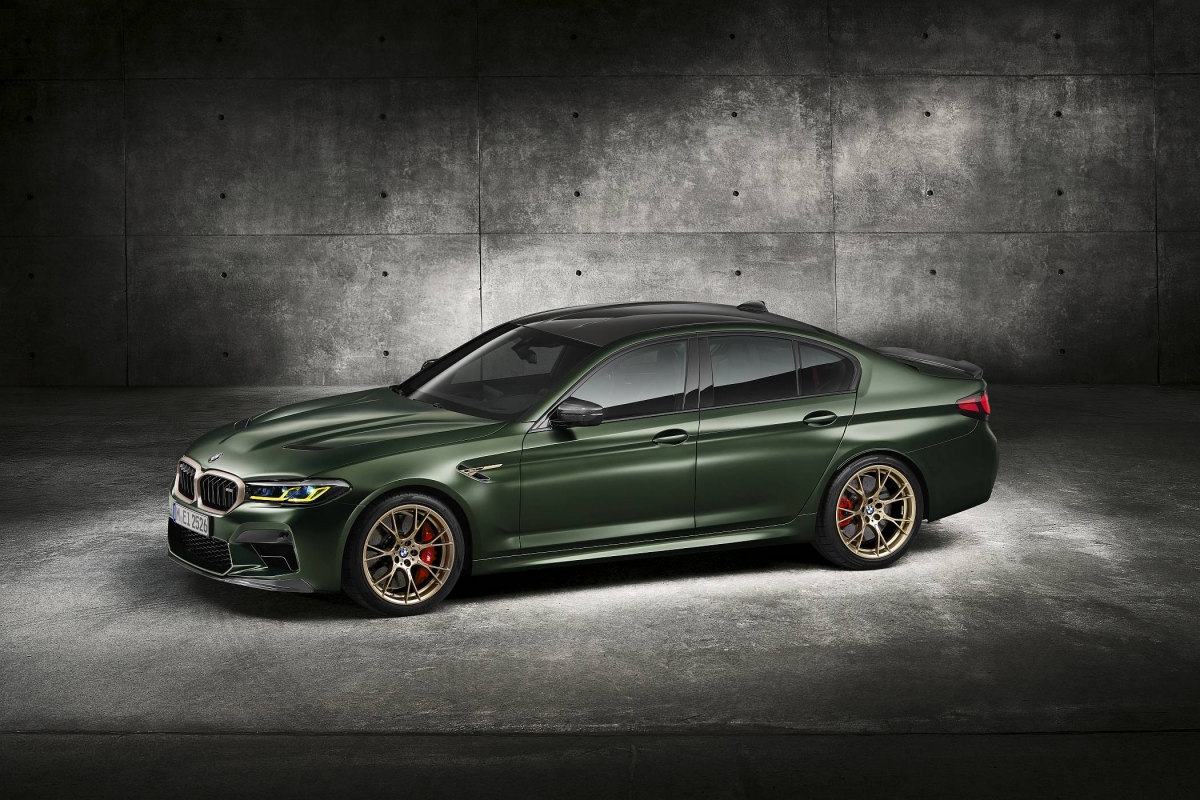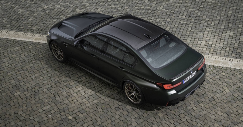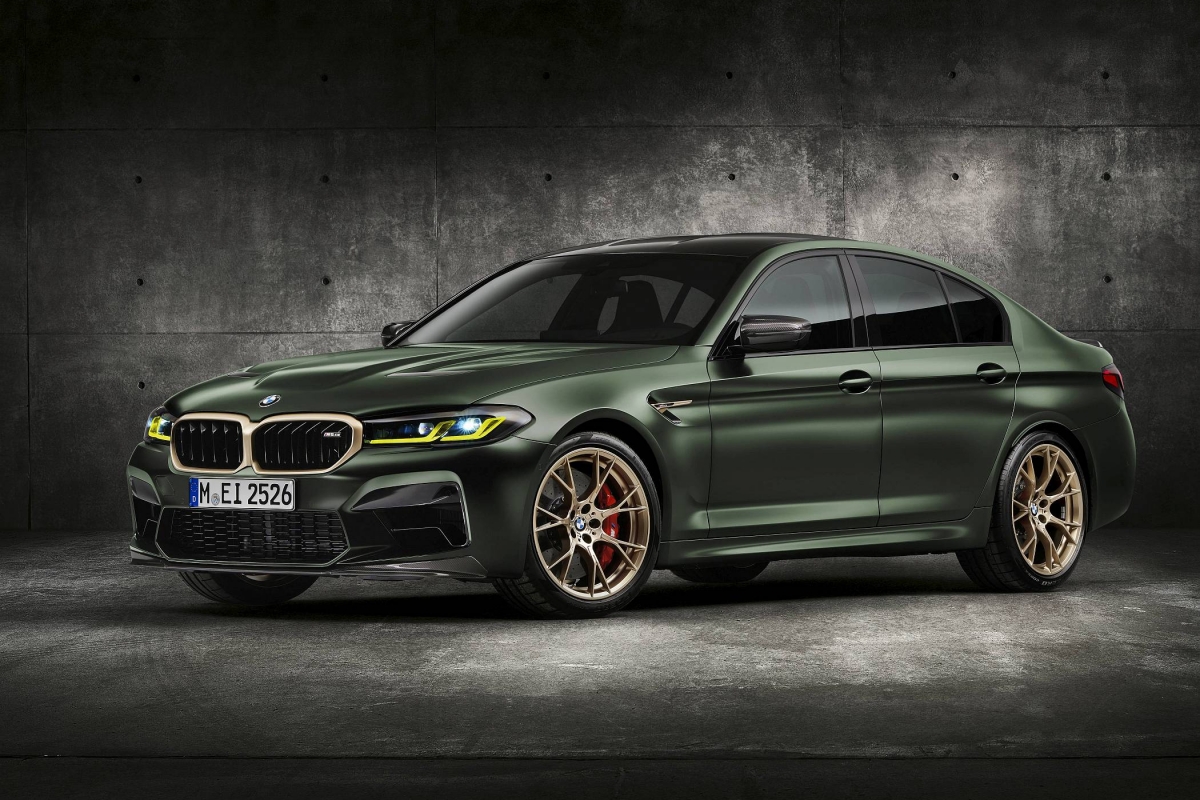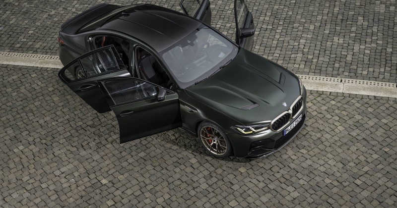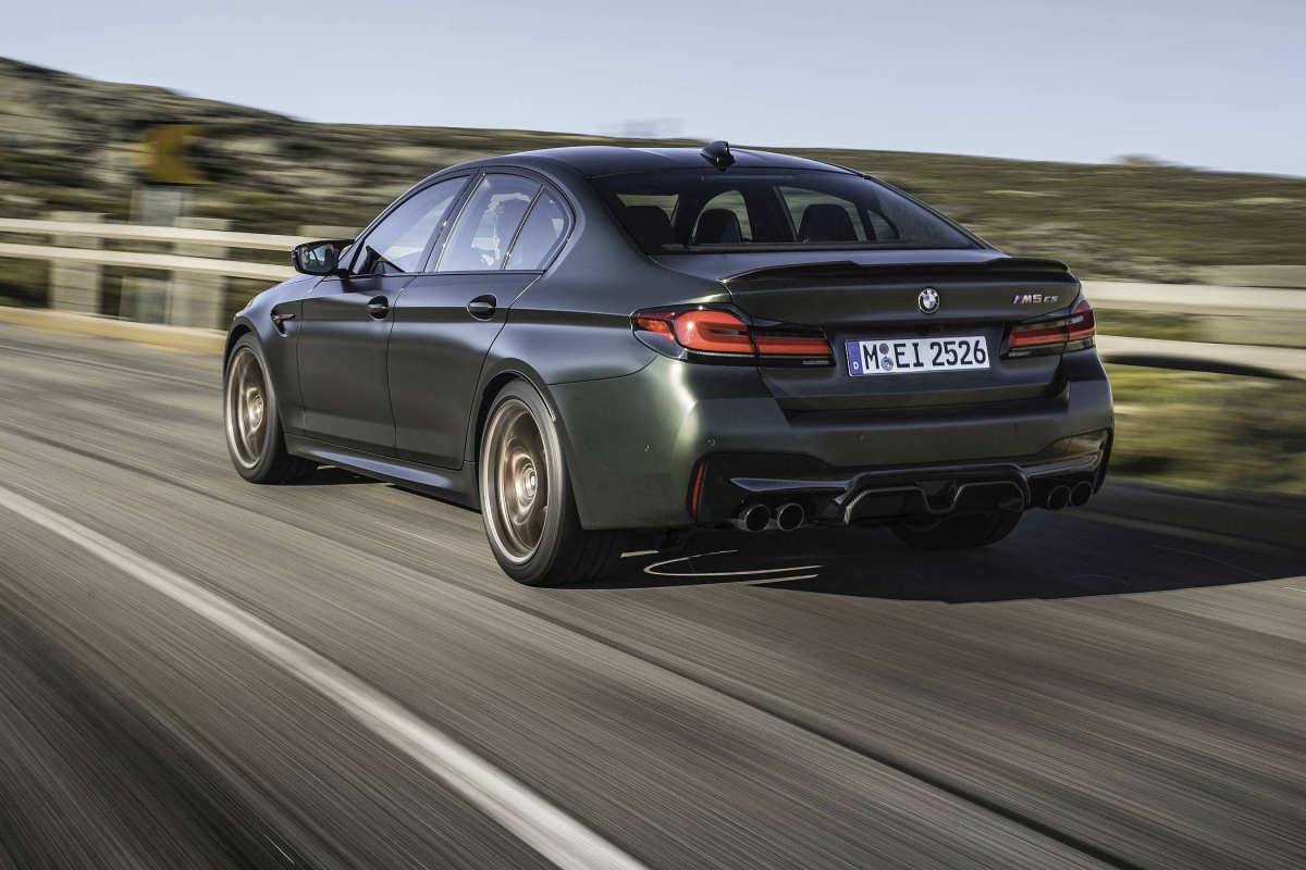 O exterior conta ainda com alguns apontamentos em bronze dourado, como a grelha dianteira, os logótipos ‘M5 CS’ e as ‘guelras’ laterais, a mesma que é aplicada nas jantes M de 20 polegadas com design em ‘Y’. Os faróis têm configuração em ‘L’ para a tecnologia BMW Laser com iluminação amarela em bvez de branco para os mínimos, máximos ou luzes de boas-vindas, evocando a recordação dos carros de competição.