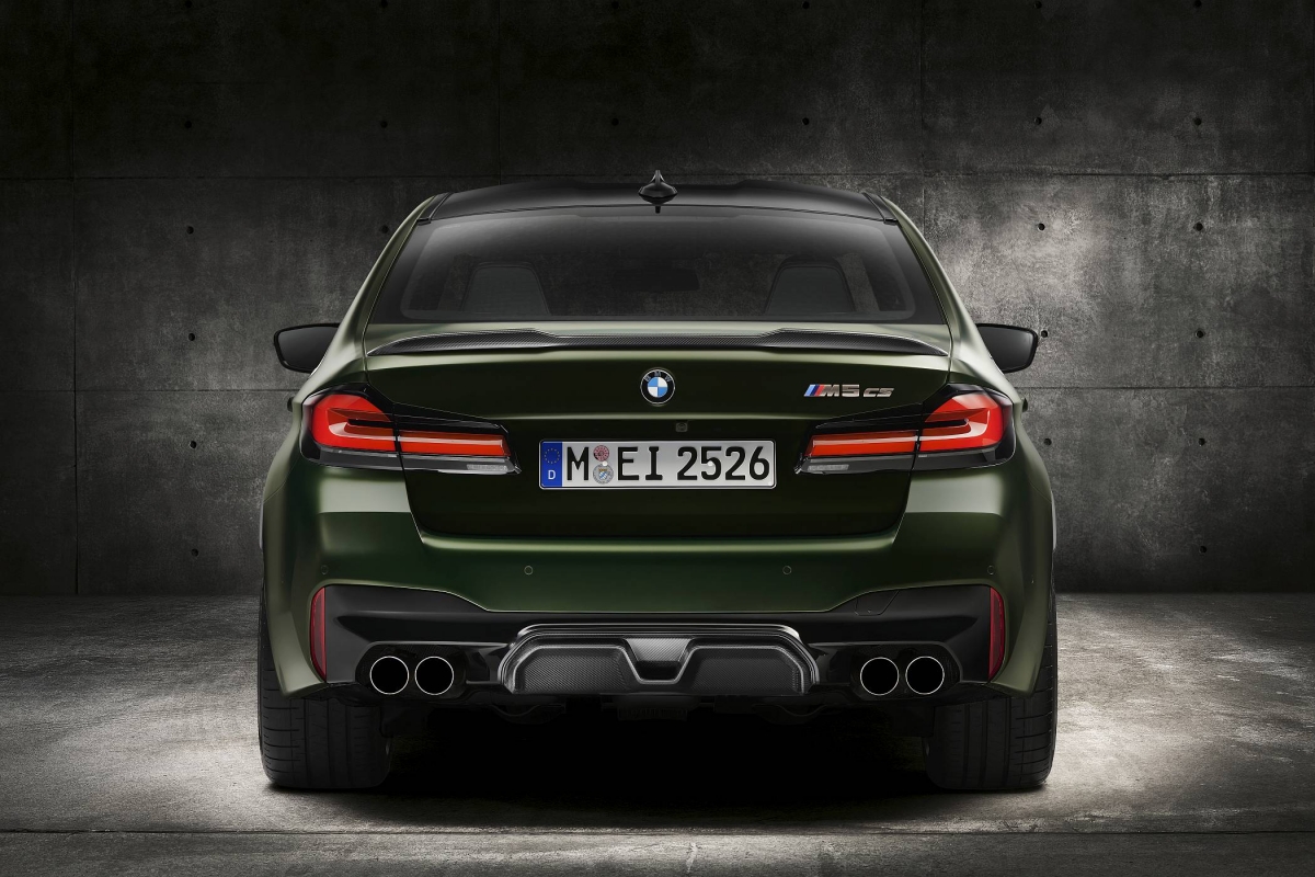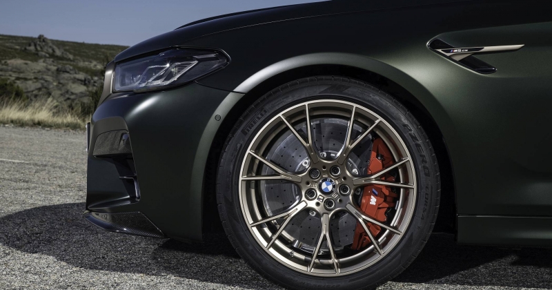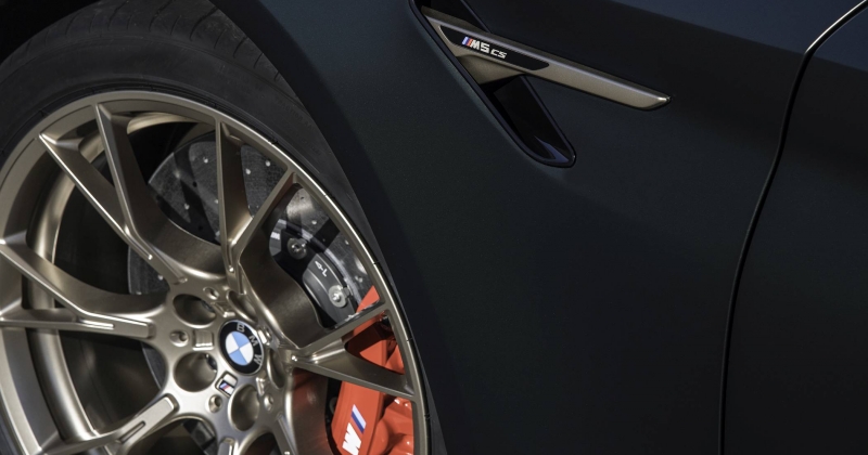Na especificação de série, o M5 CS conta com sistema de escape desportivo em inox com quatro saídas junto ao difusor traseiro e com o sistema de travagem composto pelos mais potentes discos carbocerâmicos M Carbon com maxilas pintadas em vermelho (opcionalmente, podem ser pintadas em dourado). Além da pintura cinzenta metalizada Brands Hatch estão ainda disponíveis cores matizadas da BMW Individual em cinzento Frozen Brands Hatch e verde metalizado Frozen Deep.