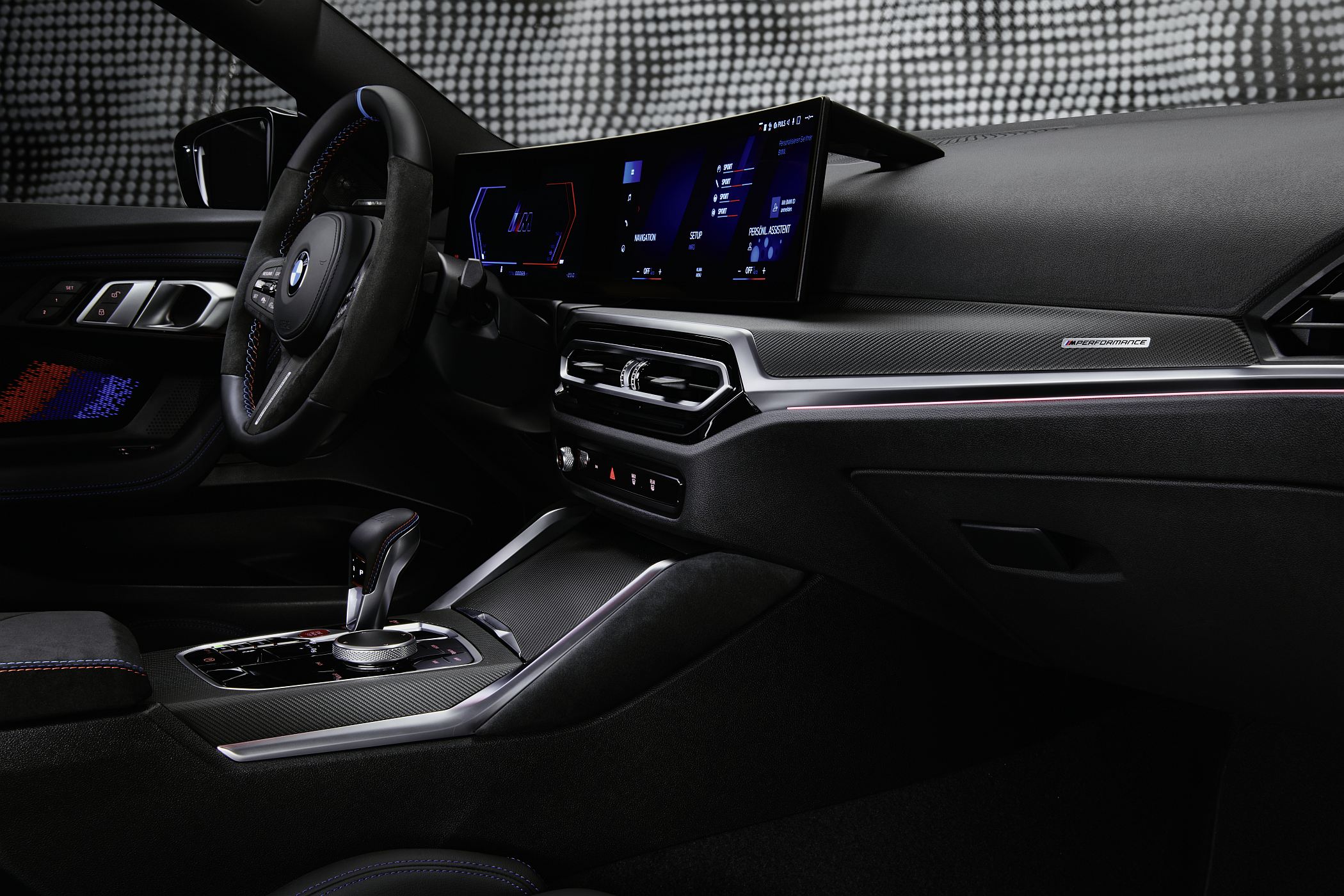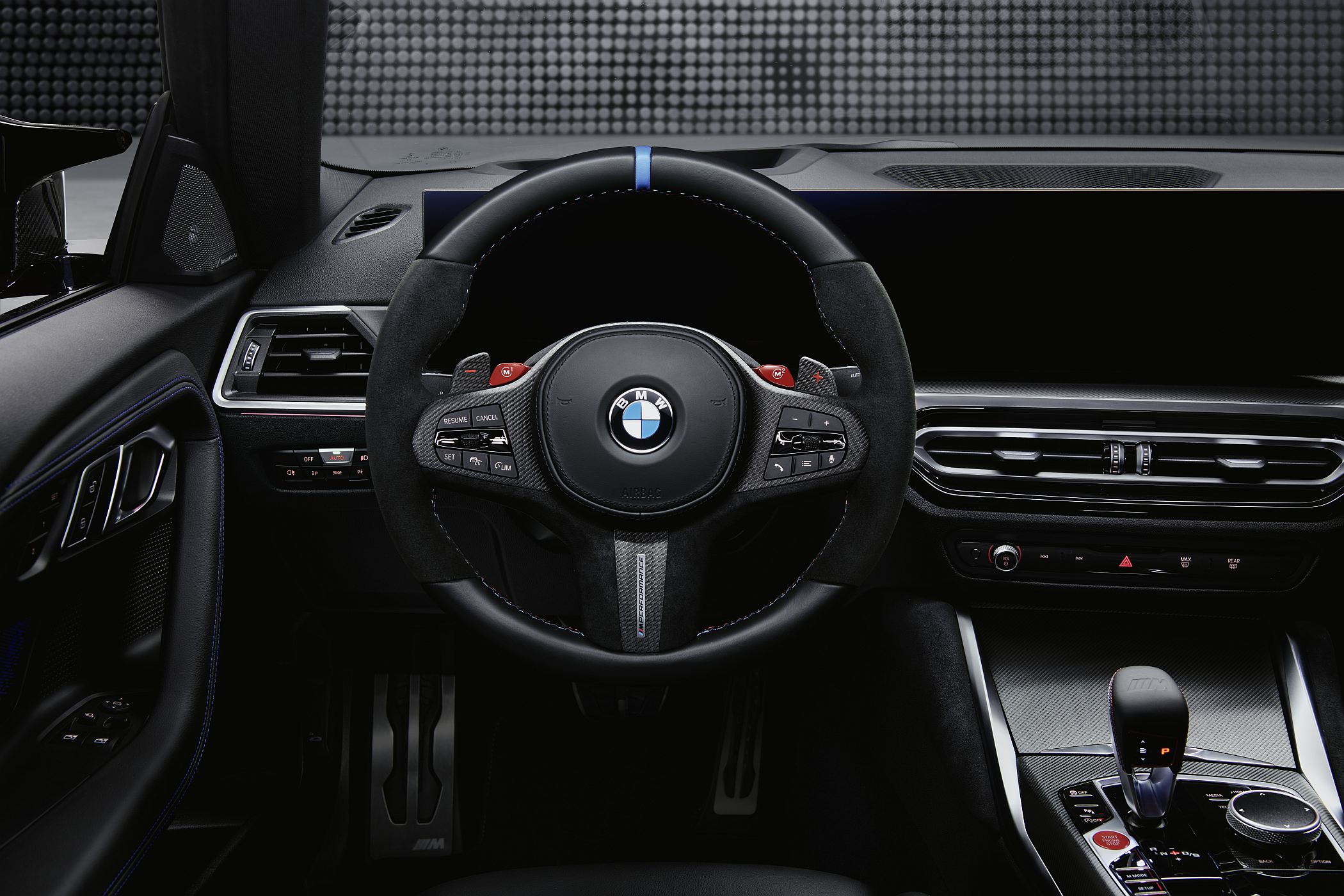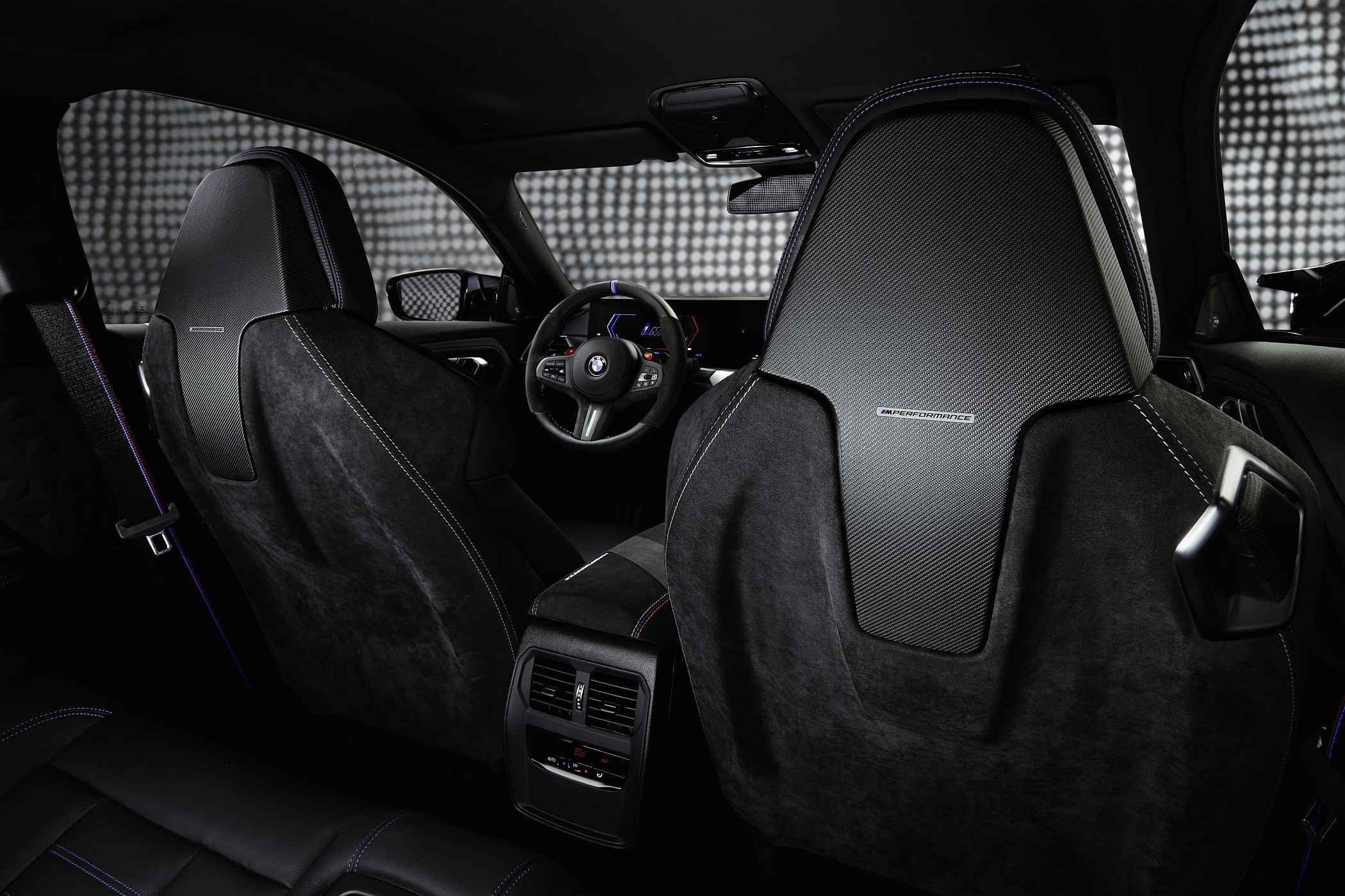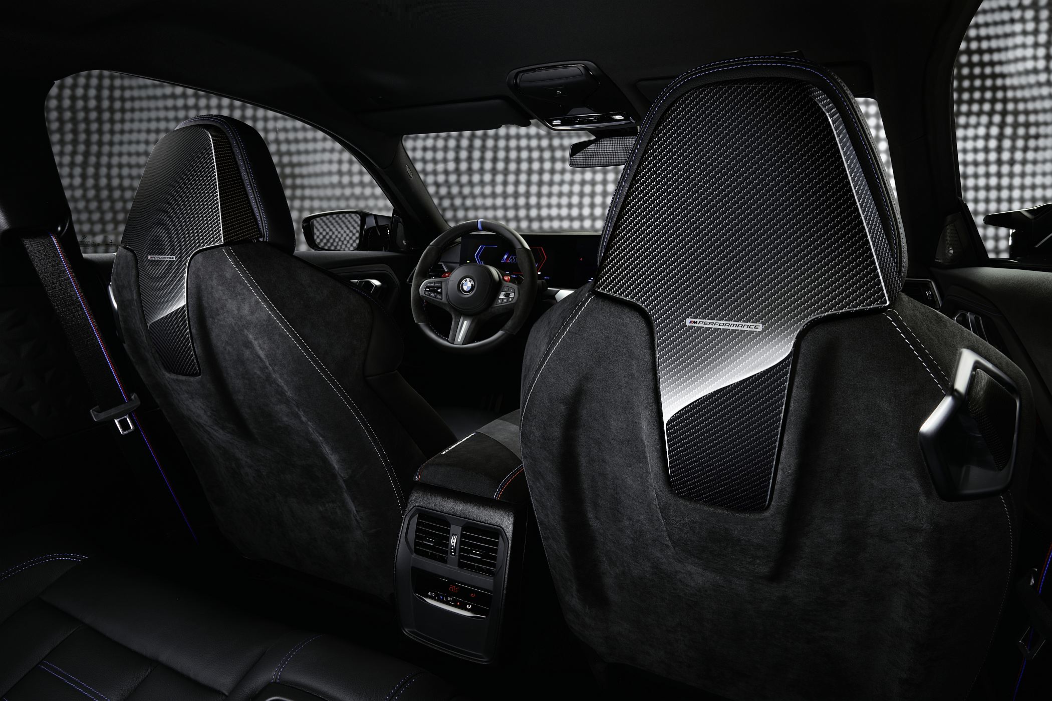 Também o habitáculo recebe uma série de componentes opcionais, como os painéis revestidos em Alcantara e fibra de carbono para um aspeto mais próximo ao de um carro de corrida, além de muitos outros detalhes especiais que constam da lista de opcionais tanto para os bancos M Sport, como para o volante Pro, este último com revestimento em Alcantara e base plana revestida em pele de melhor qualidade. Não falta ainda um marcador central no volante e pespontos decorativos da BMW GmbH, bem como revestimento especial para o encosto de braços central entre os bancos dianteiros.