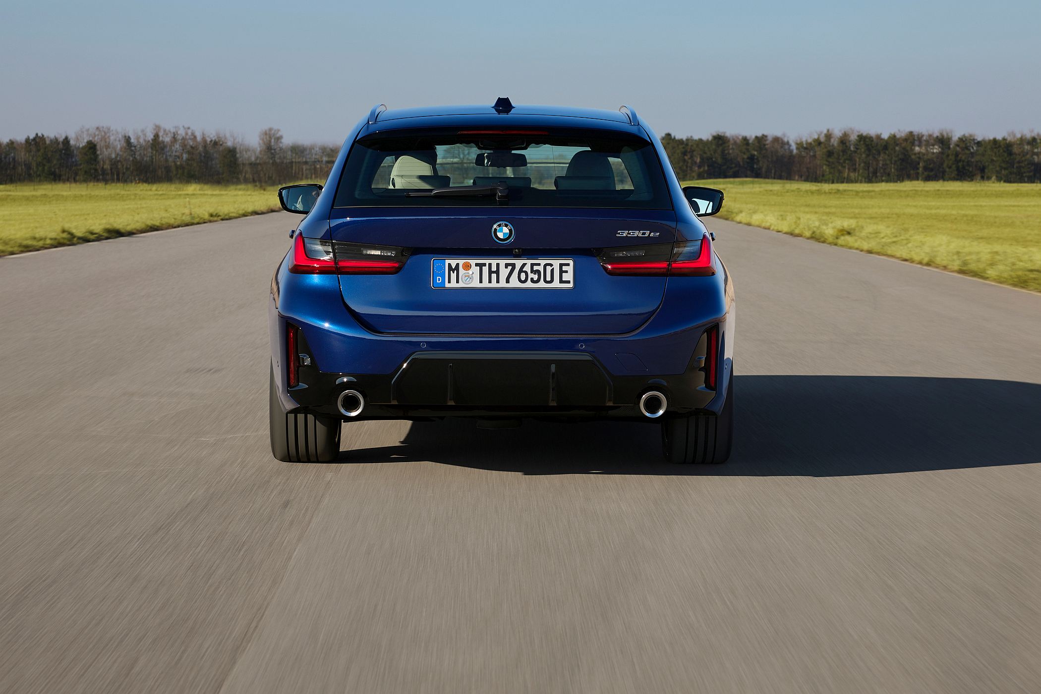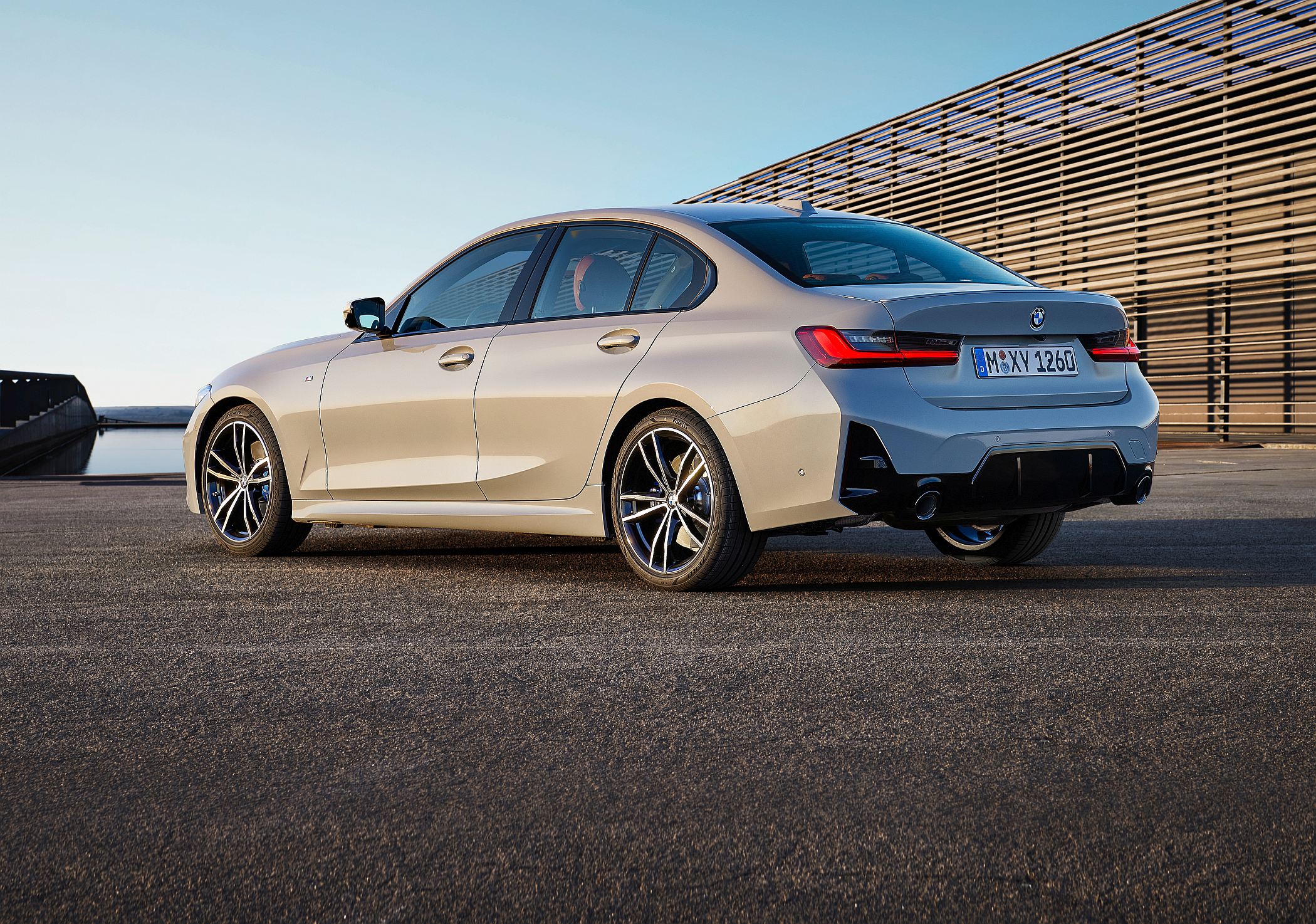 Na parte traseira, há agora uma maior proporção de superfícies pintadas na cor da carroçaria e um desenho mais nítido para as zonas inferiores do para-choques. As linhas horizontais, os farolins finos e as cavas das rodas musculadas acentuam a largura da traseira e combinam-se para um visual mais robusto e imponente. As ponteiras das saídas de escape medem agora 90 ou 100 mm de diâmetro, dependendo da variante de motor. Todos os Série 3 contam agora com jantes de 17 polegadas, de série.