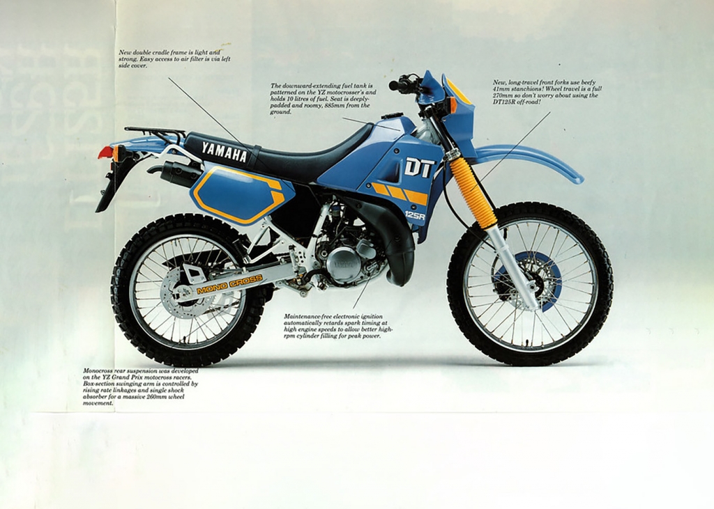 De qualquer modo, a “revolução” dá-se em 1988 com a chegada da DT 125R (mais conhecida simplesmente por DTR). Fora questões de cosmética, plásticos, suspensões… foi melhorada em especial a travagem com a chegada de um disco também atrás. Daí por diante o mercado das 125 em Portugal nunca mais foi o mesmo e a DTR tornou-se, tal como a DT 50, um caso de estudo! O sucesso foi de tal ordem que a comercialização se prolongou até ao fim do século XX sem grandes mudanças!