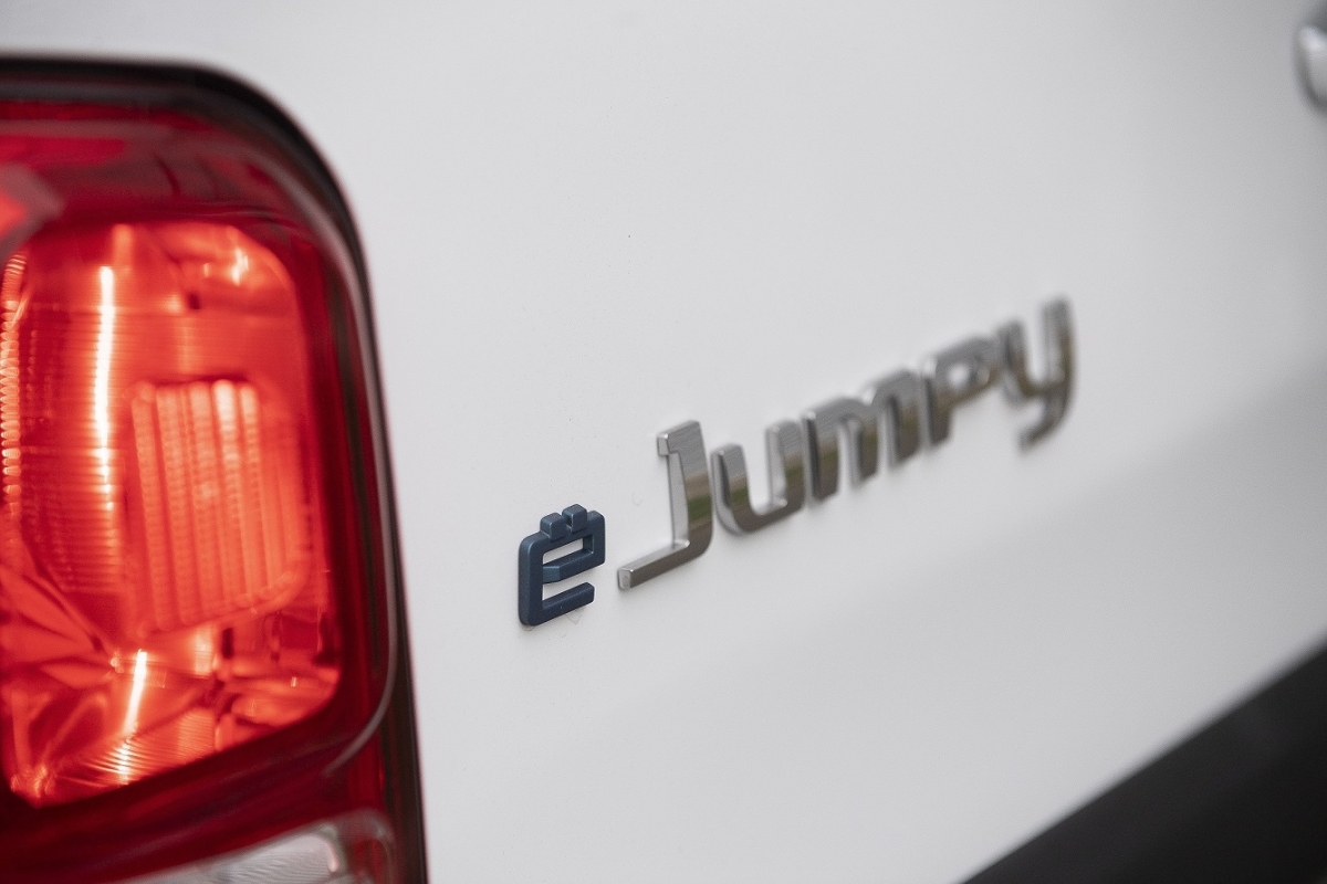 Este elétrico complementa a oferta proposta pela gama Jumpy a combustão, contando com um conjunto de equipamentos adicionais. Adota elementos como sejam os eixos com afinação específica, placa de proteção do motor, plataforma adequada à instalação das baterias sob o piso e, em opção, o aumento da carga útil e Grip Control.