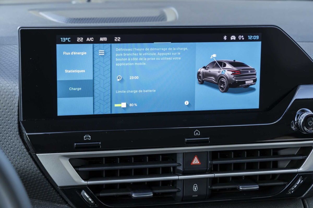 A bateria admite carga rápida até 100 kW num carregador público, o que permite atingir 80% da capacidade em 30 minutos. Já com uma uma Wall Box de 7,4 kW / 32 amperes monofásica, o carregamento demora 7,5 horas. A Citroën dá uma garantia de oito anos ou 160.000 km na bateria.