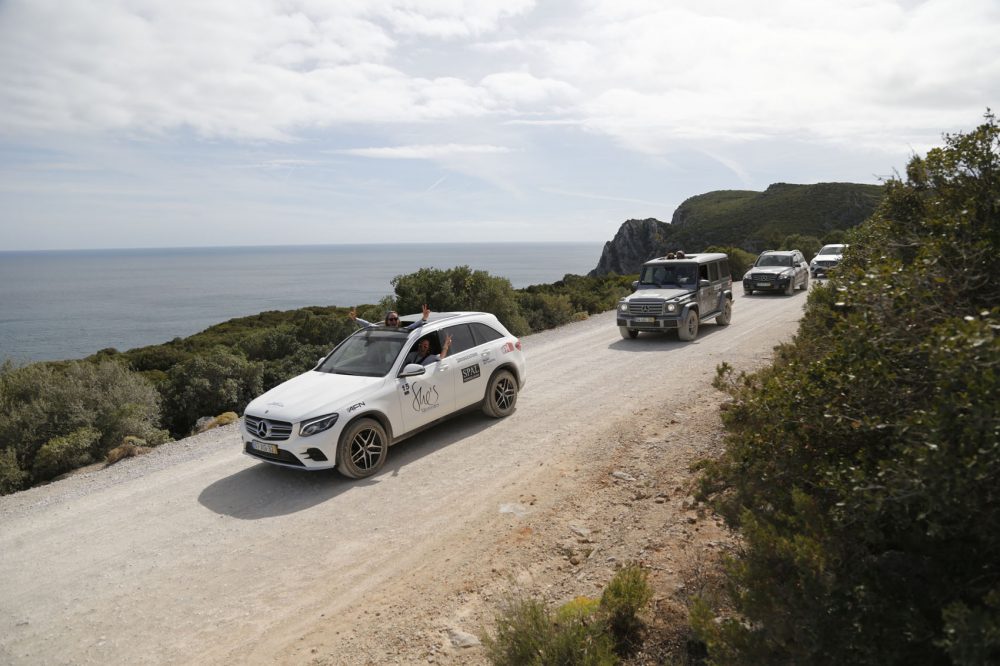 A terceira edição do She’s Mercedes Off Road Experience desenrolou-se num dia convidativo a novas aventuras. Saindo do ponto de encontro no Parque das Nações, foi após a passagem para a margem sul que as emoções aqueceram, com a primeira etapa a percorrer os trilhos e estradões de Setúbal. A Primeira paragem foi numa adega, que incluía a prova de vinho Moscatel de Setúbal, para a caravana de condutoras Mercedes mover-se logo de seguida para a Quinta de Catralvos, onde continuaram as experiências de condução em todo-o-terreno.
