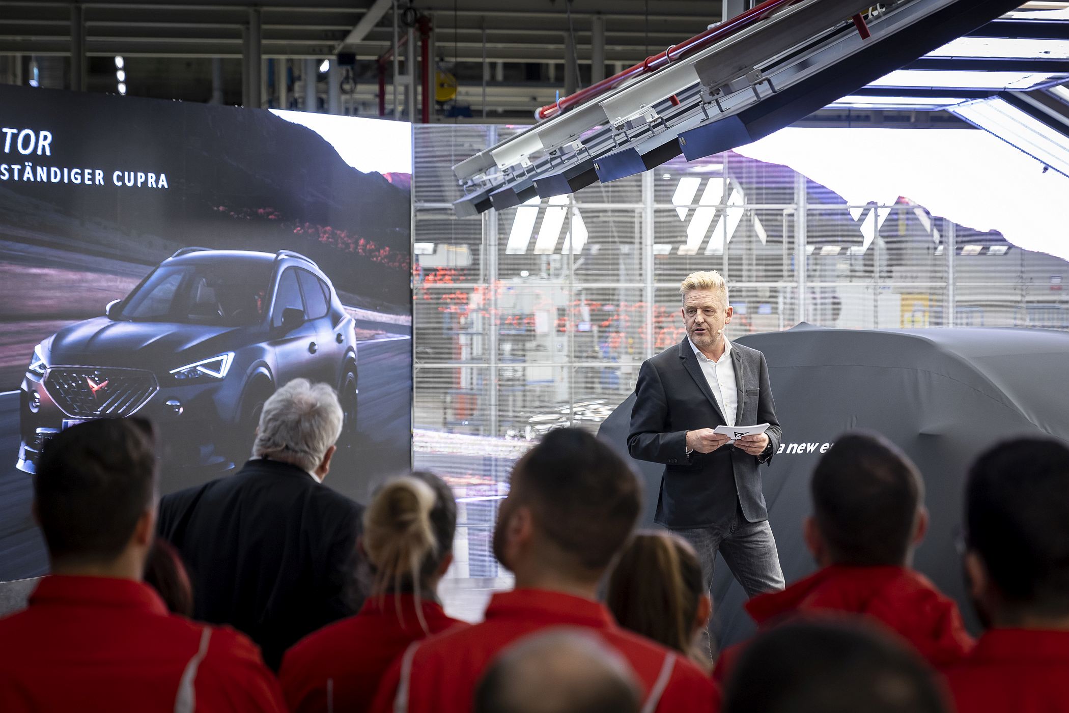 No evento com o CEO da CUPRA Wayne Griffiths, Markus Háupt, Vice-Presidente Executivo de Produção e Logística da SEAT S.A., Alfons Dintner, CEO da Audi Hungria, Zóltan Les, Membro da Direção de Produção Automóvel da Audi Hungria, e outros representantes da Audi Hungria, os colaboradores puderam ver o veículo de perto, que eles próprios irão fabricar a partir de 2024.