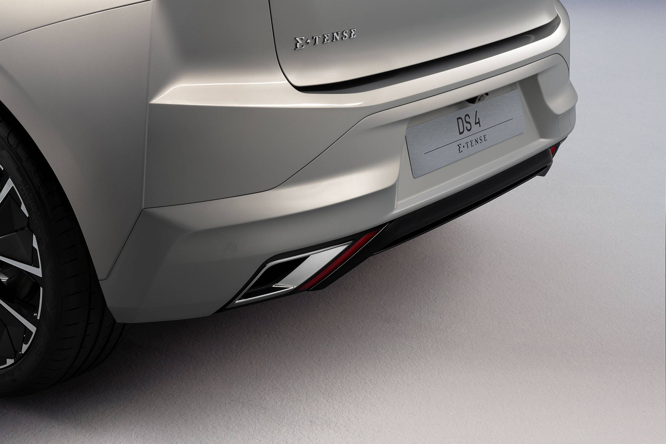 Na secção traseira, o tejadilho “desce” até ao óculo traseiro bastante inclinado, com película de esmalte que procura sublinhar a elegância do DS 4. Uma silhueta com um estilo marcado e que promove uma maior eficácia dinâmica. Para impor ainda mais o seu lado mais másculo, os guarda-lamas revelam volume generoso, com curvas e arestas vivas na carroçaria que destacam o pilar C, este marcado por um apontamento em preto brilhante, com o emblema DS Automobiles incrustado. Além disso, a traseira exibe a assinatura luminosa de nova geração, com um efeito escamado progressivo e gravado a laser.