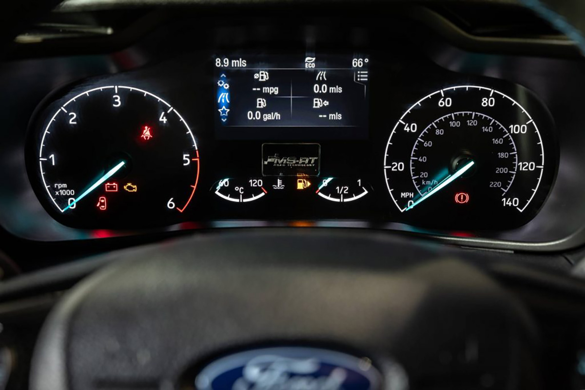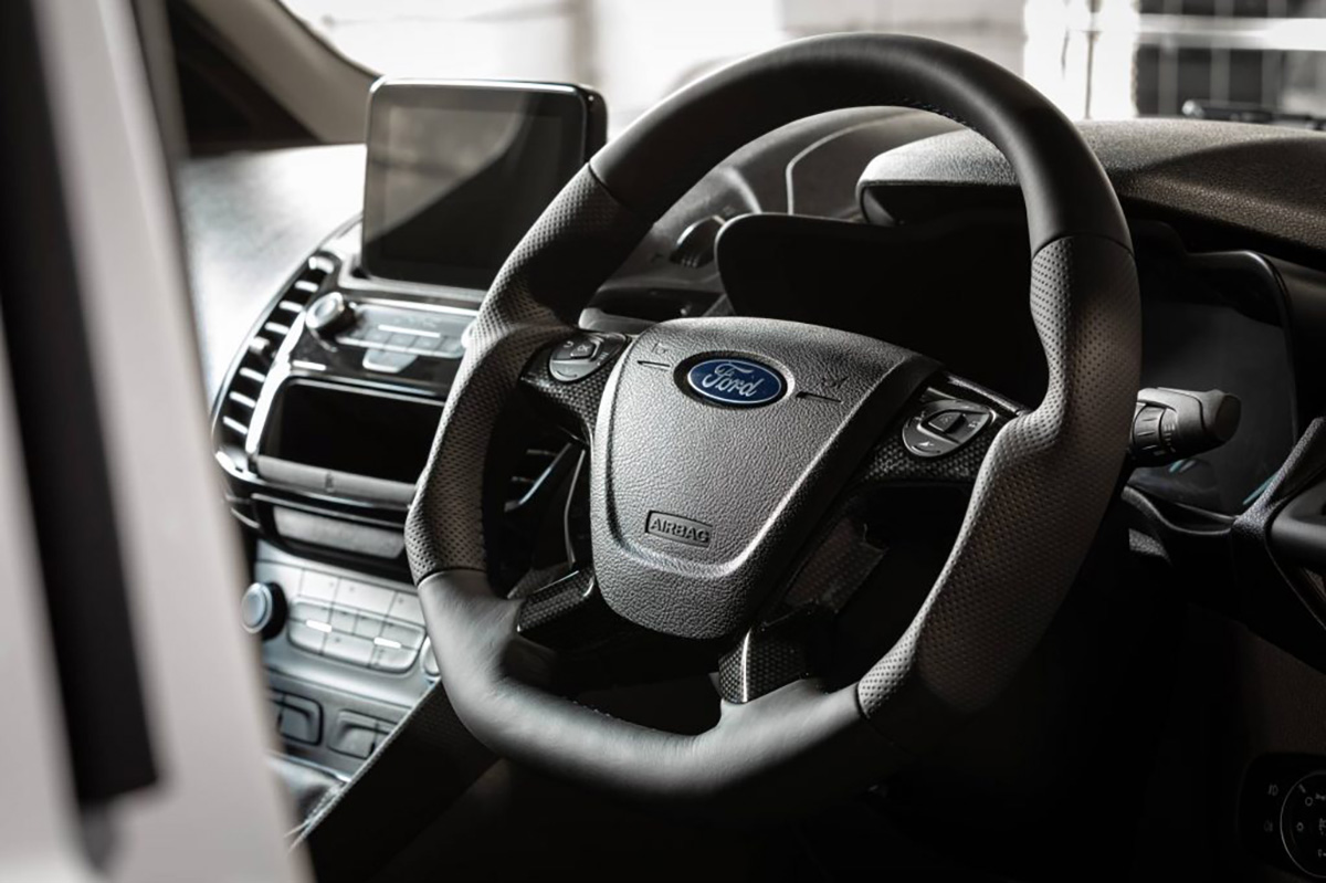 O aspeto desportivo mantém-se no interior com a utilização de bancos em couro com pespontos em vermelho e um volante em fibra de carbono com linha central em vermelho. Entre o equipamento de fábrica, destaque para o Ford Pass Connect, cruise control e sistema de carregamento wireless para o smartphone.