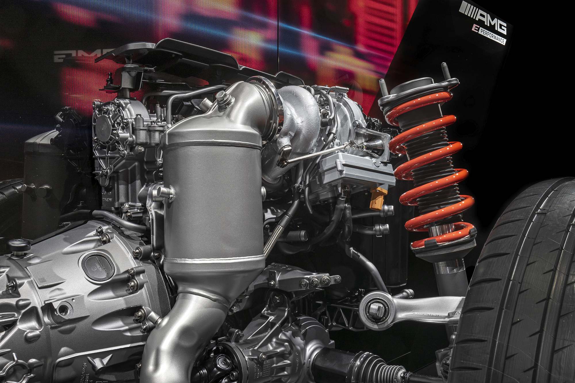 Além disso, a filosofia ‘E-Performance’ contará com uma nova abordagem na forma do 2.0 litros de quatro cilindros com turbo elétrico que irá elevar a fasquia dos híbridos de altas prestações em modelos como o novo Classe C. O modelo revelado recentemente irá enjeitar os V6 e, a exemplo do que acontece nos Classe A e CLA, entre outros, terá apenas versões AMG com motor de quatro cilindros de designação M 139. O bloco térmico já foi utilizado em modelos de performance em posição transversal, mas nos AMG estará em posição longitudinal, surgindo melhorado e afinado. O objetivo foi quebrar os seus próprios limites em termos de potência extraída para um bloco de quatro cilindros.