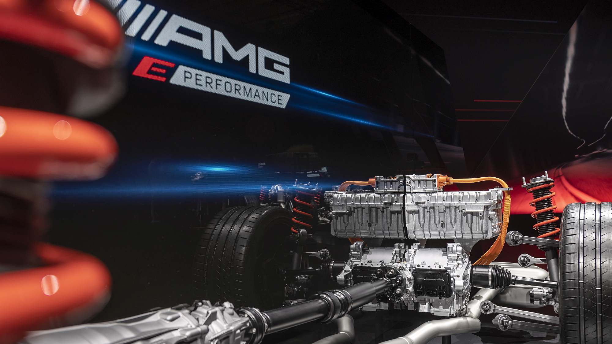 De acordo com a AMG, este conceito permite vantagens para os modelos desportivos. O motor elétrico atua diretamente no eixo traseiro, sem conversão pela caixa AMG Speedshift MCT-9G, e pode assim converter a sua potência mais rapidamente para o efeito de propulsão, quer em aceleração, quer nas recuperações. O diferencial autoblocante de atuação eletrónica pode alocar o binário necessário para cada roda consoante a situação de condução. Em caso de escorregamento do eixo traseiro, a potência elétrica também pode ser transmitida ao eixo dianteiro, recorrendo ao sistema de tração integral e à conexão mecânica da tração integral variável através do veio de transmissão central e dianteira. Já o posicionamento dos componentes no eixo traseiro melhora a distribuição de peso, permitindo assim uma melhor dinâmica.