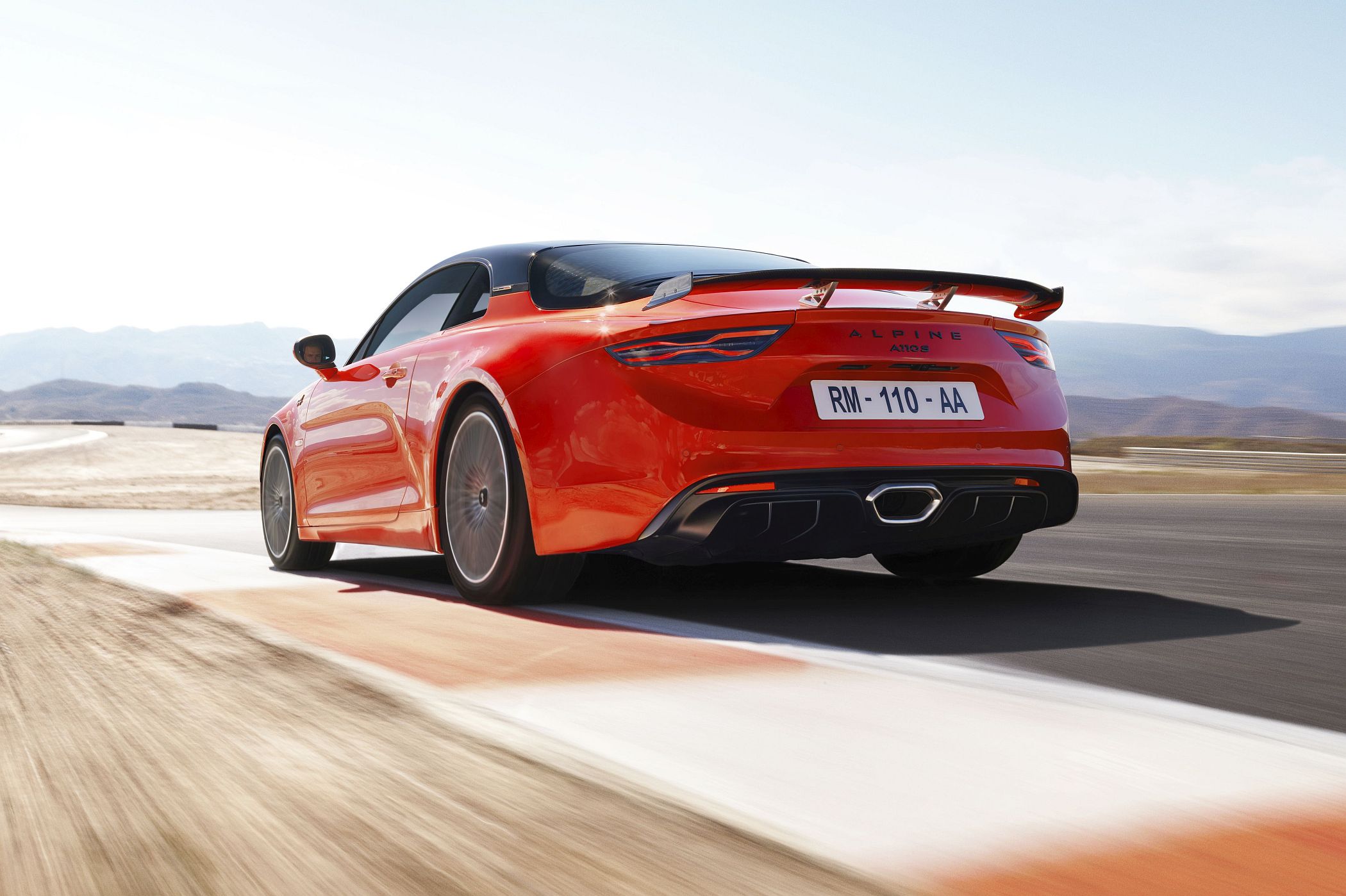 Por seu turno, o novo Alpine A110 S situa-se no topo da cadeia, sendo mais orientado para as prestações mais extremas, com chassis ‘Sport’, motor de 300 CV, pneus semi-slick Michelin PS Cup 2 opcionais e um kit aerodinâmico produzido à medida para este modelo que acentua a sua eficácia, sobretudo em pista. Em destaque neste modelo está o chassis afinado a preceito, contando com travões, sistema de escape e bancos desportivos de série. O pacote aerodinâmico opcional em carbono adiciona elementos agressivos. Há também possibilidade de contar com pintura bi-tom entre o laranja ‘Fire Orange’ e o tejadilho preto ‘Deep Black’.